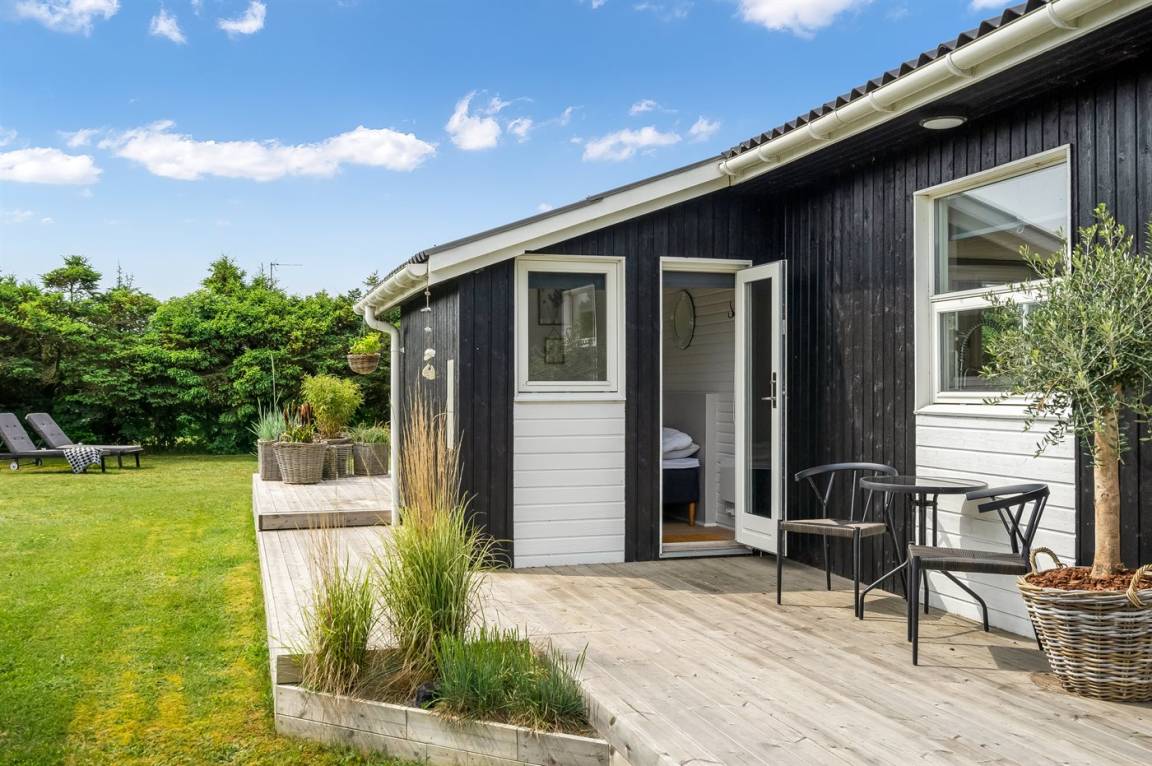 DraußenDie Ferienunterkunft liegt auf einem 1200 m² großen Naturgrundstück. Das Grundstück ist eingezäunt. Die Entfernung zum Meer beträgt 600 m. Die nächste Einkaufsmöglichkeit liegt 500 m entfernt. Es steht ein 90 m² Terrassenareal zur Verfügung. Es steht ein Grill zur Verfügung. Es ist ein Ladestecker für Elektroautos installiert. Ladestecker Typ 2. Parkplatz auf dem Grundstück.