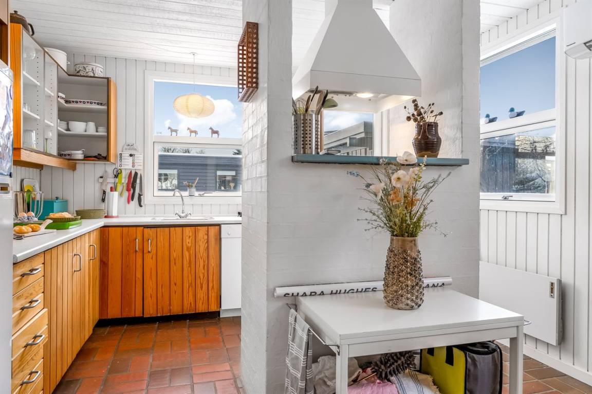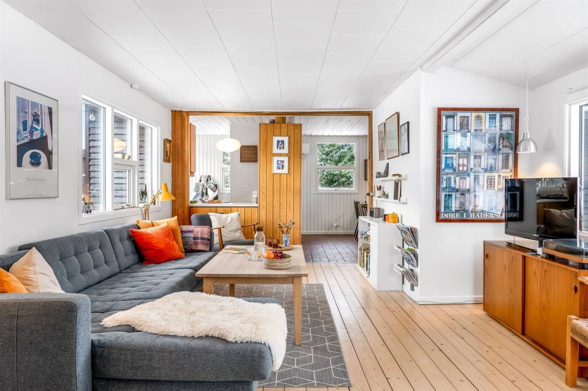 DraußenDie Ferienunterkunft liegt auf einem 795 m² großen Gartengrundstück. Die Entfernung zum Meer beträgt 300 m. Die Entfernung zum Fjord beträgt 12440 m. Die nächste Einkaufsmöglichkeit liegt 1500 m entfernt. In einem Abstand von 17300 m gibt es einen Golfplatz. Es steht ein offenes Terrassenareal zur Verfügung. Es steht ein Grill zur Verfügung. Parkplatz auf dem Grundstück.