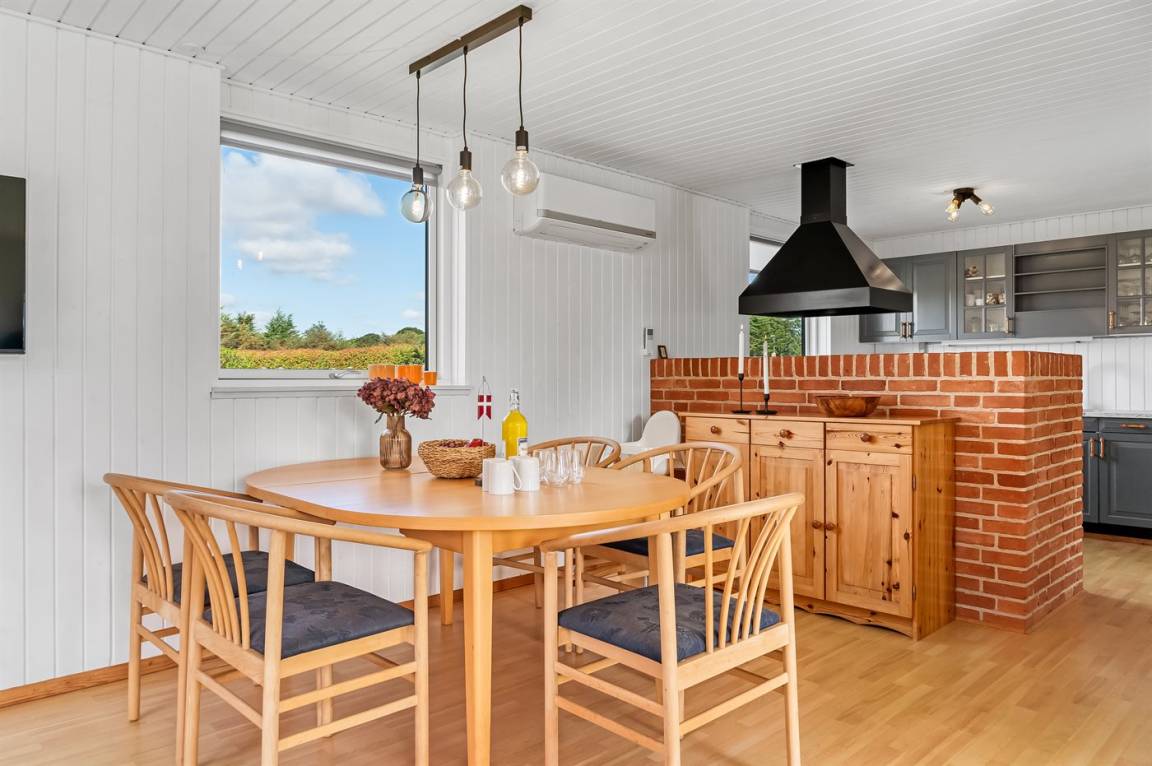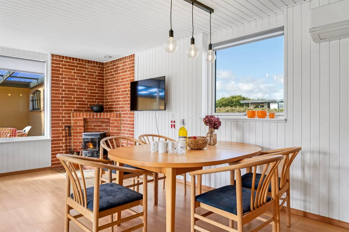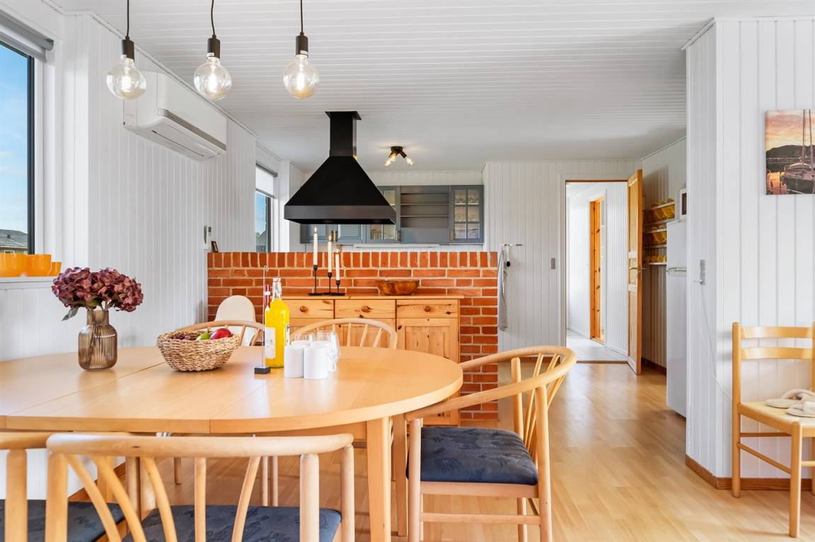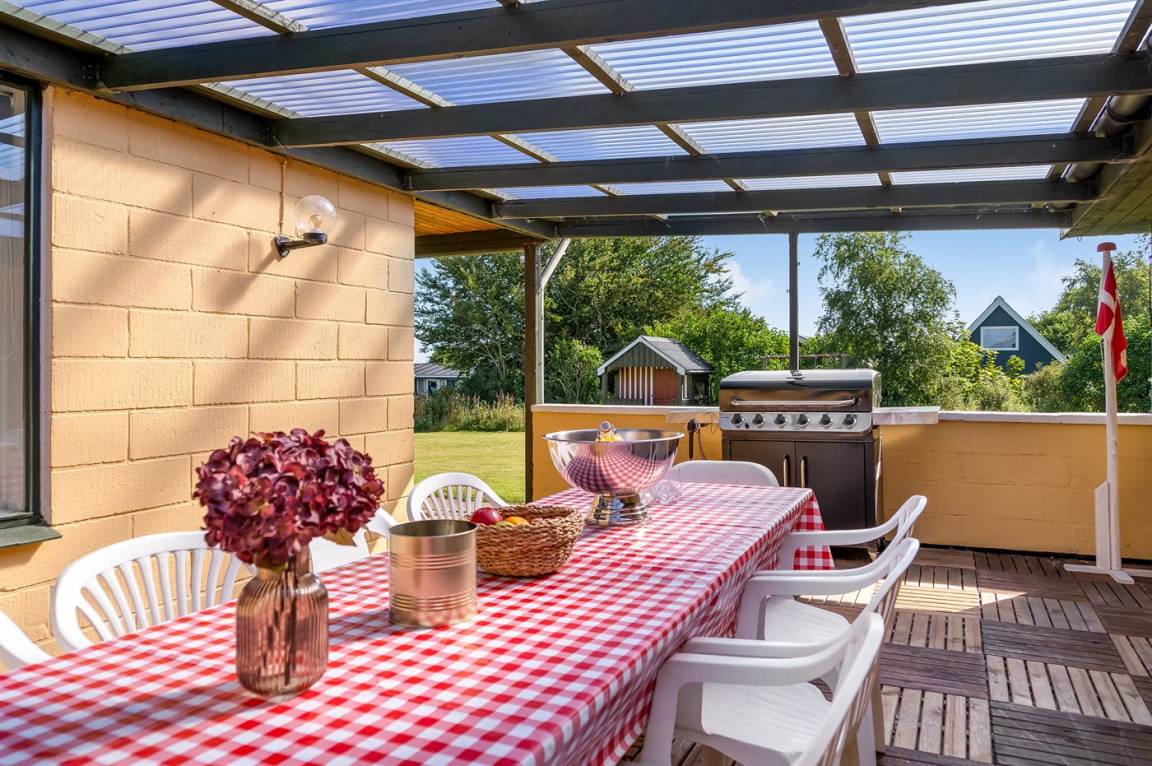 DraußenDie Ferienunterkunft liegt auf einem 1335 m² großen Gartengrundstück. Die Entfernung zum Meer beträgt 280 m. Die Entfernung zum Fjord beträgt 6740 m. Die nächste Einkaufsmöglichkeit liegt 1350 m entfernt. In einem Abstand von 13780 m gibt es einen Golfplatz. Außerdem gibt es 25 m² überdachte Terrasse. Es steht ein offenes Terrassenareal zur Verfügung. Kinderspielhaus. Es steht ein Grill zur Verfügung. Parkplatz auf dem Grundstück.
