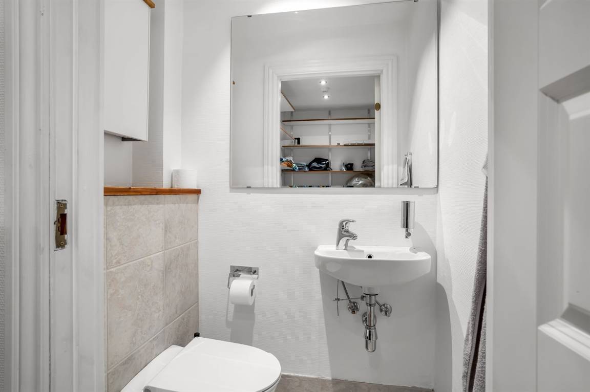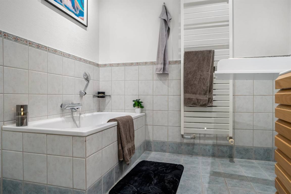 WC und BadEs gibt 1 Badezimmer mit Fußbodenheizung, Duschnische, Badewanne und Toilette. Außerdem steht eine Gästetoilette zur Verfügung – ebenfalls mit Fußbodenheizung.