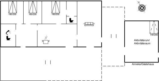 SchlafverhältnisseDie Schlafplätze verteilen sich auf 4 Schlafräume. 6 Schlafplätze in Doppelbetten. 2 Schlafplätze auf einer Doppelschlafcouch. 2 von diesen Schlafplätzen befinden sich im Aktivitätsraum im Gästehaus. Ferner steht ein Kinderbett zur Verfügung.