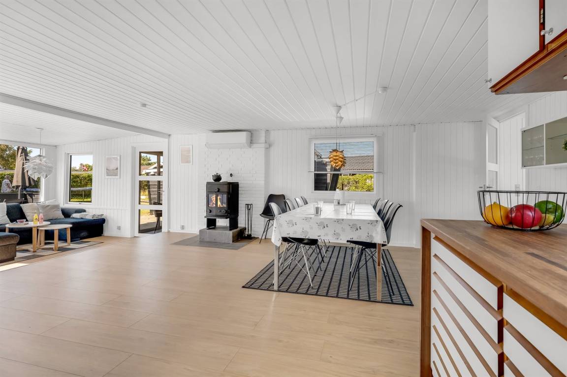 EinrichtungDas Ferienhaus eignet sich für 10 Personen. Die Ferienunterkunft hat eine Wohnfläche von 99 m² und wurde 1973 gebaut. Es ist erlaubt 1 Haustier mitzubringen. In der Ferienunterkunft ist eine energiesparender Luft zu Luft Wärmepumpe installiert. Die Ferienunterkunft ist mit Waschmaschine ausgestattet. Wäschetrockner. Es gibt außerdem einen Kaminofen. Für die jüngsten Feriengäste ist 1 Kinderhochstuhl vorhanden.