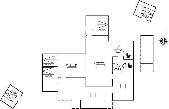 DraußenDie Ferienunterkunft liegt auf einem 860 m² großen Gartengrundstück. Die Entfernung zum Meer beträgt 650 m. Die nächste Einkaufsmöglichkeit liegt 1500 m entfernt. Es steht ein offenes Terrassenareal zur Verfügung. Sandkasten. Trampolin. Es steht ein Grill zur Verfügung. Parkplatz auf dem Grundstück.
