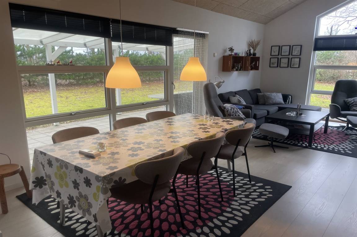 DraußenDie Ferienunterkunft liegt auf einem 1381 m² großen Gartengrundstück. Die Entfernung zum Meer beträgt 850 m. Die Entfernung zum Fjord beträgt 11800 m. Die nächste Einkaufsmöglichkeit liegt 780 m entfernt. In einem Abstand von 17700 m gibt es einen Golfplatz. Es steht ein offenes Terrassenareal zur Verfügung. Außerdem gibt es überdachte Terrasse. Es steht ein Grill zur Verfügung. Auf dem Grundstück gibt es ein Handballtor. Parkplatz auf dem Grundstück.