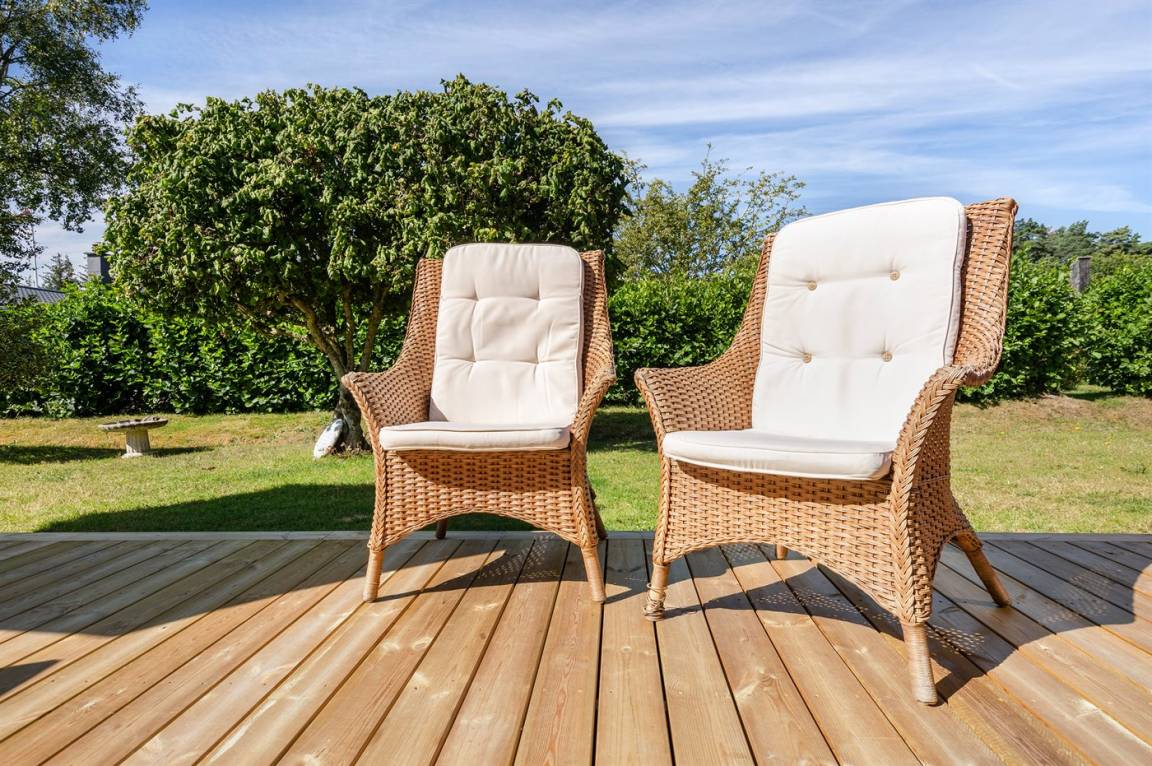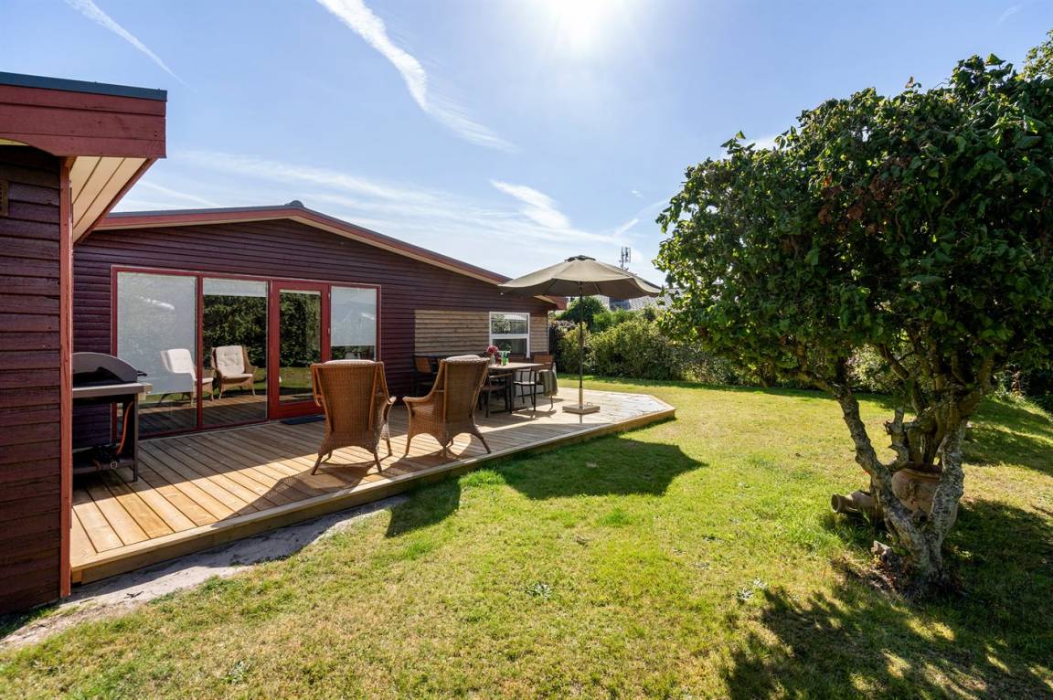 DraußenDie Ferienunterkunft liegt auf einem 636 m² großen Gartengrundstück. Die Entfernung zum Meer beträgt 600 m. Die nächste Einkaufsmöglichkeit liegt 2000 m entfernt. Es steht ein offenes Terrassenareal zur Verfügung. Außerdem gibt es überdachte Terrasse. Es steht ein Grill zur Verfügung. Parkplatz auf dem Grundstück.