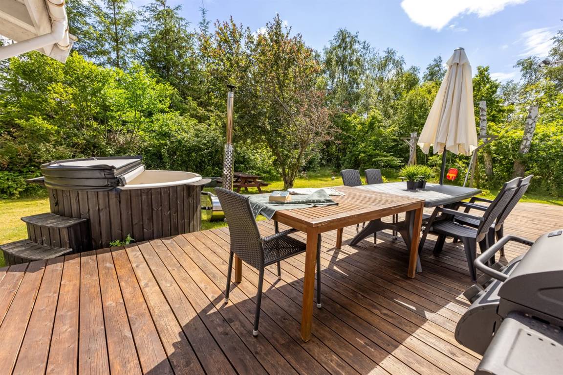 Schönes Ferienhaus in ruhiger Umgebung im schönen Helberskov, mit kurzer Entfernung sowohl zum Kattegat als auch zum Mariager Fjord. Das Ferienhaus verfügt über einen Wellnessbereich mit Pool, Sauna und Whirlpool sowie Zugang zu einer schönen Sonnenterrasse mit einem Hot Tub. Ungestörter Garten mit Schaukel, Trampolin, Feuerstelle und viel Platz zum Spielen und Toben.