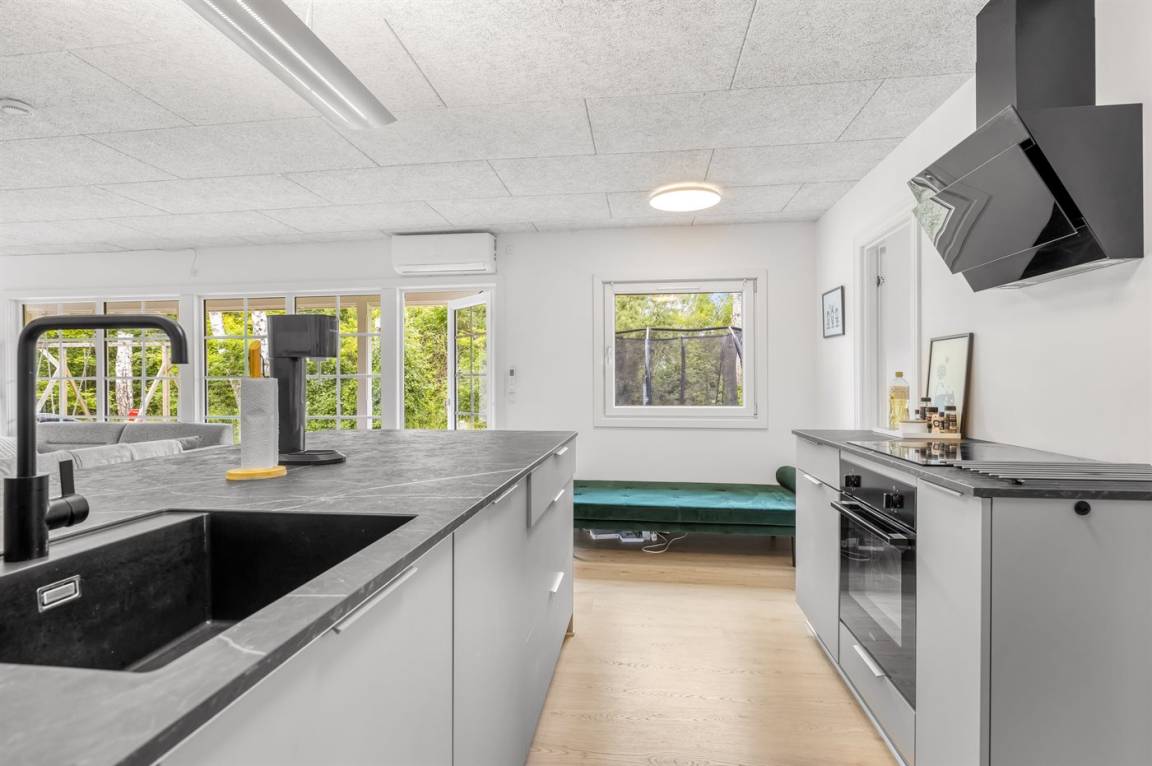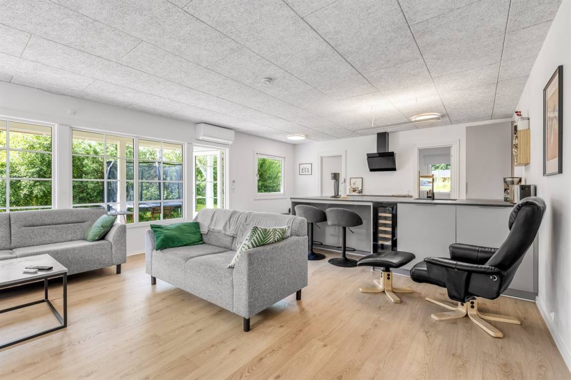 DraußenDie Ferienunterkunft liegt auf einem 1204 m² großen Naturgrundstück. Die Entfernung zum Meer beträgt 950 m. Die Entfernung zum Fjord beträgt 2700 m. Die nächste Einkaufsmöglichkeit liegt 2800 m entfernt. In einem Abstand von 12700 m gibt es einen Golfplatz. Es steht ein offenes Terrassenareal zur Verfügung. Außerdem gibt es überdachte Terrasse. Schaukel. Sandkasten. Trampolin.Lagerfeuerstelle. Es steht ein Grill zur Verfügung. Es ist ein Ladestecker für Elektroautos installiert. Ladestecker Typ 2. Mit einer Ladeleistung von 11 kW. Parkplatz auf dem Grundstück.