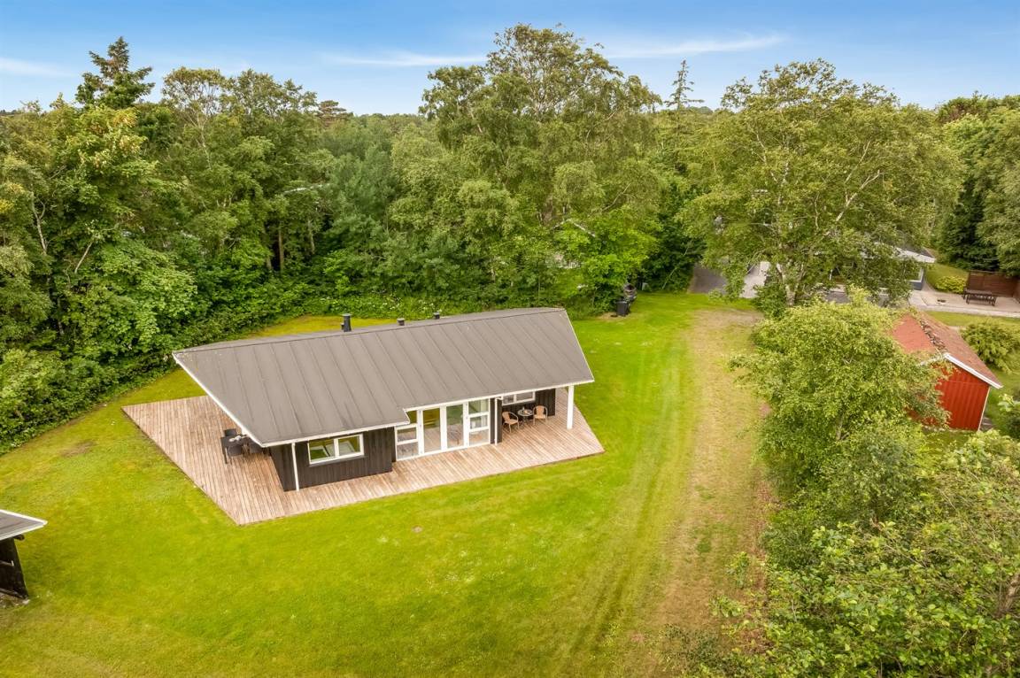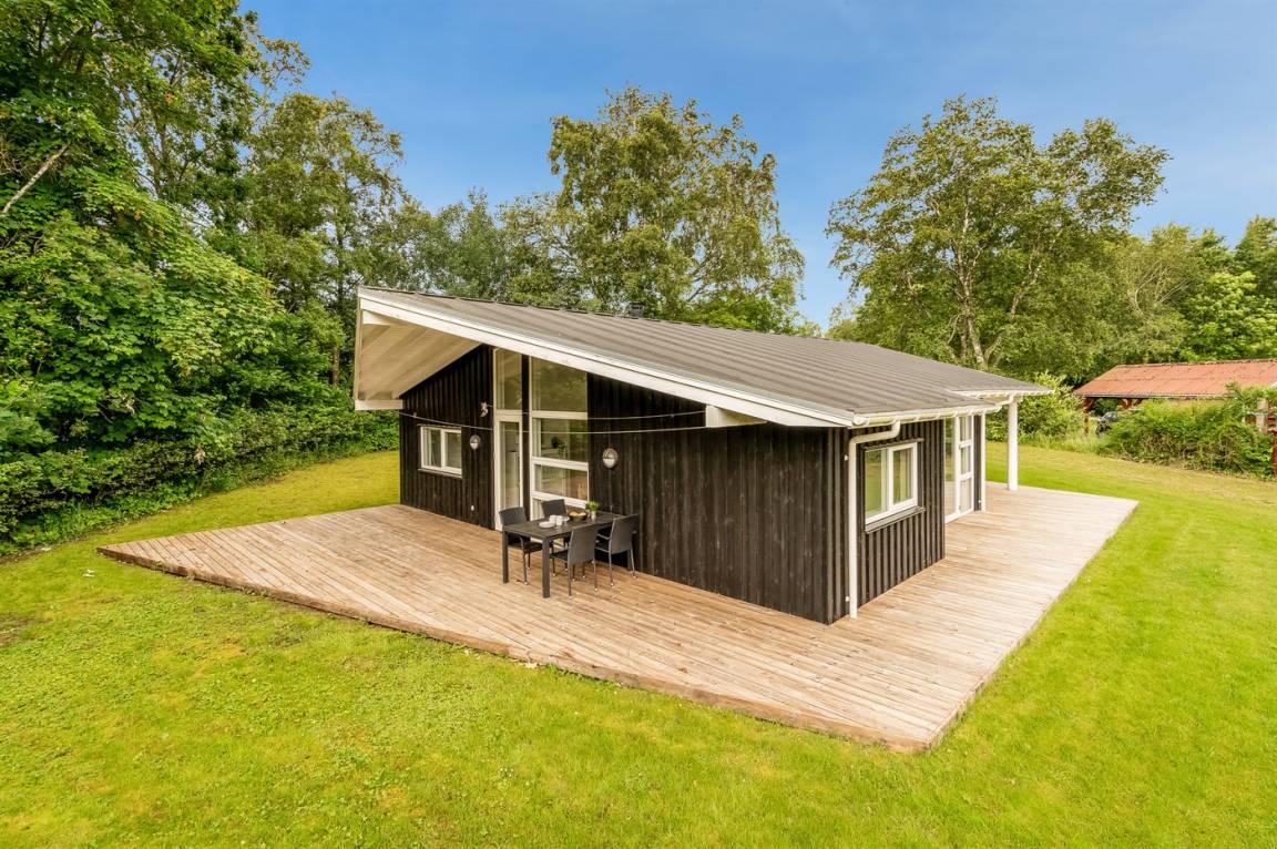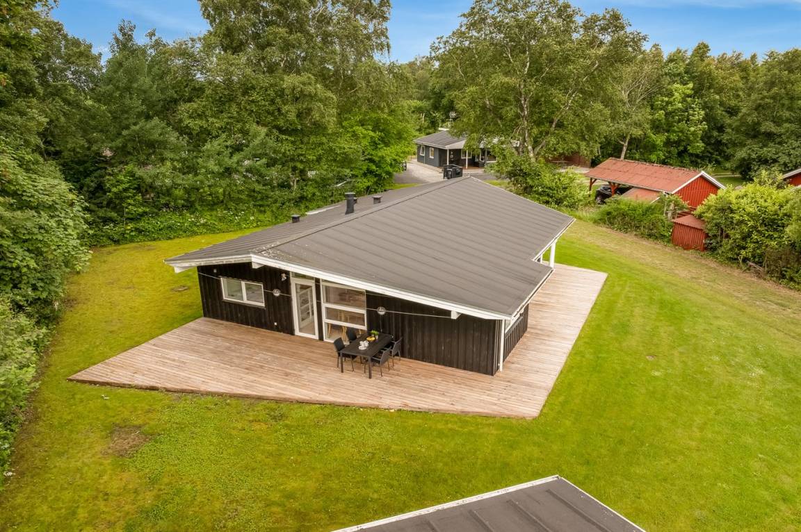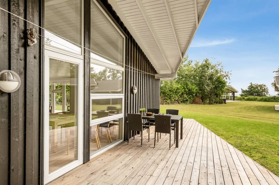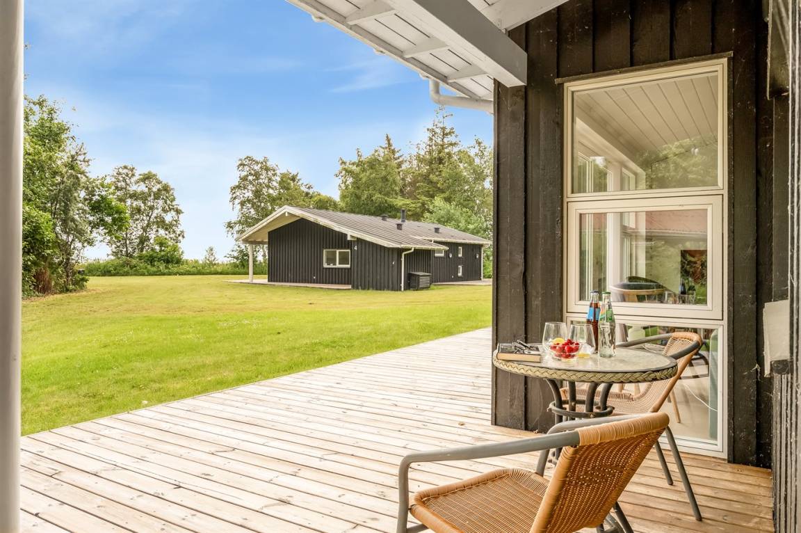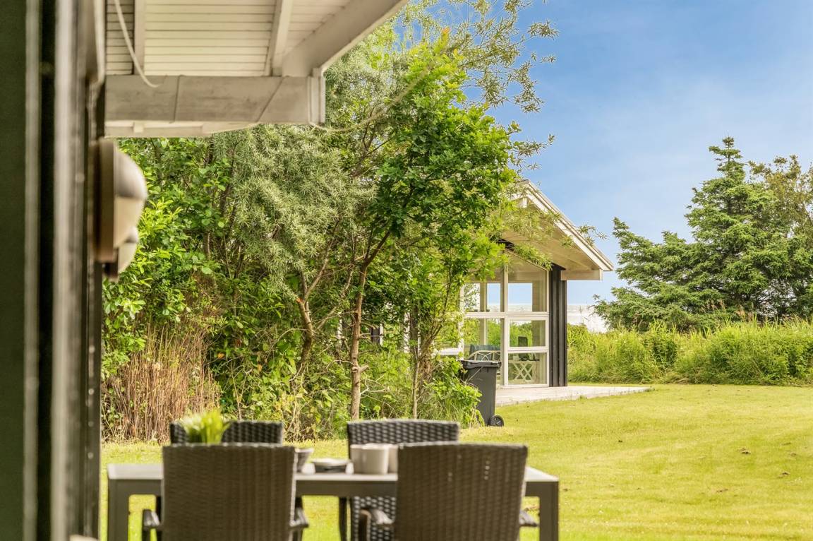 Das Ferienhaus verfügt über eine herrliche Terrassenfläche, von der aus man die Sonne genießen und gleichzeitig einen guten Überblick über den Garten behalten kann, während die Kinder hier spielen. Es gibt auch eine feine überdachte Terrasse, die dazu beiträgt, die schönen Sommerabende zu verlängern.