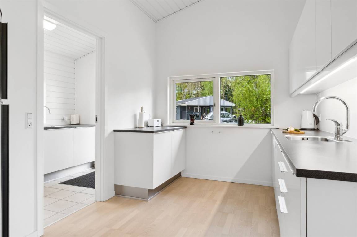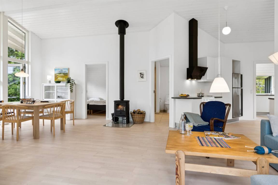 Entlang der herrlichen Küstenlinie des Kattegats in der ruhigen und naturschönen Feriengegend bei Helberskov liegt dieses feine und neuere Ferienhaus aus dem Jahr 2015. Das Ferienhaus befindet sich auf einem guten Grundstück mit viel Platz zum Spielen und liegt nur 200 Meter vom Wasser entfernt mit einem schönen Blick auf das Wasser. Die beeindruckende Aussicht erstreckt sich sowohl drinnen als auch draußen.
