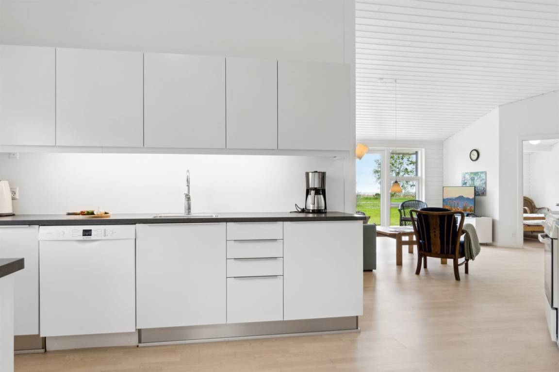 Innen präsentiert sich das Ferienhaus hell und modern und ist in sehr gutem Zustand. Das Herzstück des Hauses ist die große und helle Küche/Esszimmer und das Wohnzimmer in einem, mit viel Tageslicht und direktem Zugang zur schönen Terrasse. Das Ferienhaus ist gut eingerichtet, und es gibt ausreichend Platz für eine Familie mit Kindern, die vielleicht auch die Großeltern mit in den Urlaub nehmen möchten - die Möglichkeiten sind vielfältig in diesem schönen Ferienhaus.