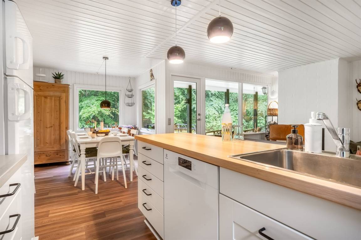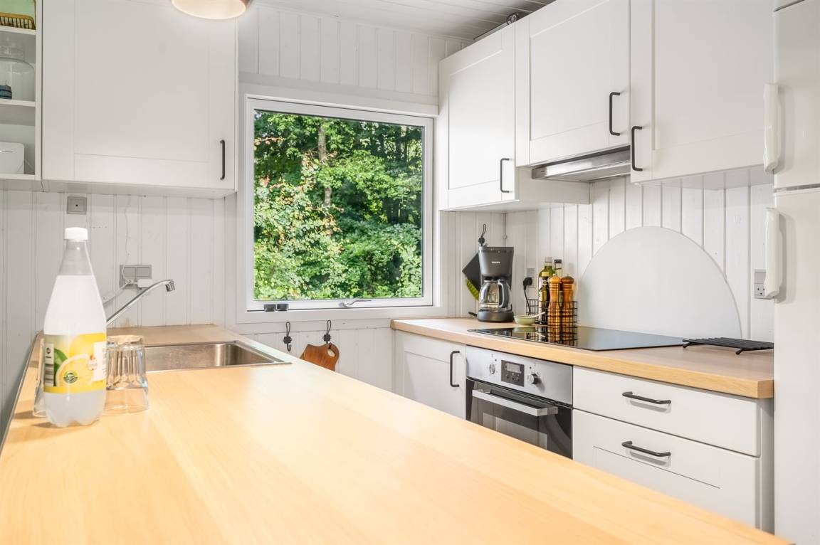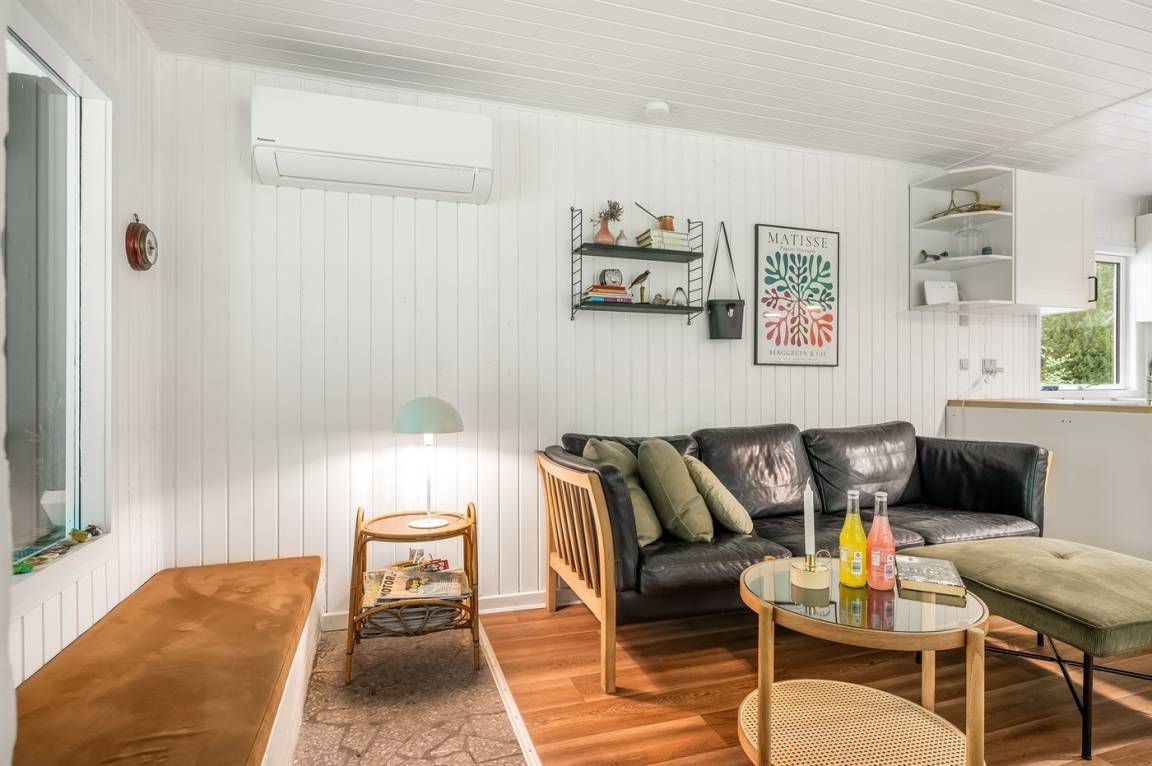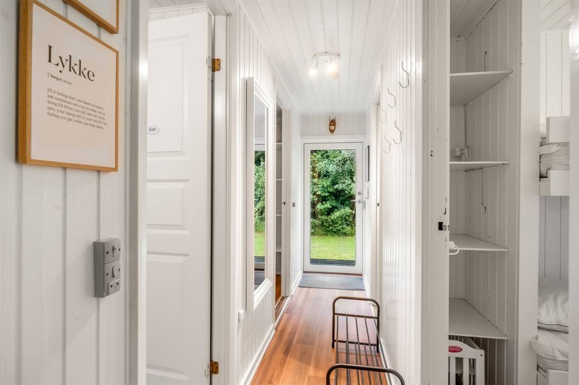 DraußenDie Ferienunterkunft liegt auf einem 2499 m² großen Naturgrundstück. Die Entfernung zum Meer beträgt 400 m. Die Entfernung zum Fjord beträgt 2100 m. Die nächste Einkaufsmöglichkeit liegt 5300 m entfernt. In einem Abstand von 14850 m gibt es einen Golfplatz. Es steht ein offenes Terrassenareal zur Verfügung. Außerdem gibt es überdachte Terrasse. Geräteraum. Schaukel. Sandkasten. Fußballtor. Windschutzhütte.An Sommerabenden sorgt der Außenkamin für eine gemütliche Atmosphäre. Es steht ein Grill zur Verfügung. Es ist ein Ladestecker für Elektroautos installiert. Parkplatz auf dem Grundstück.