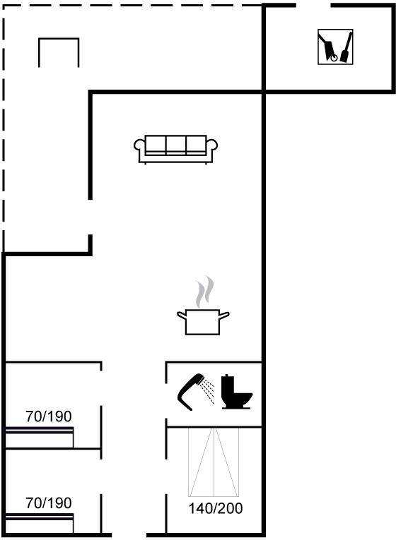 SchlafverhältnisseDie Schlafplätze verteilen sich auf 3 Schlafräume. 2 Schlafplätze in einem Doppelbett. 4 Schlafplätze in Etagenbetten. Ferner steht ein Kinderbett zur Verfügung.