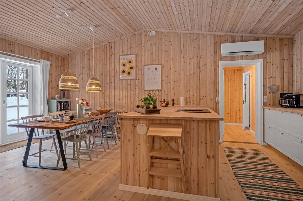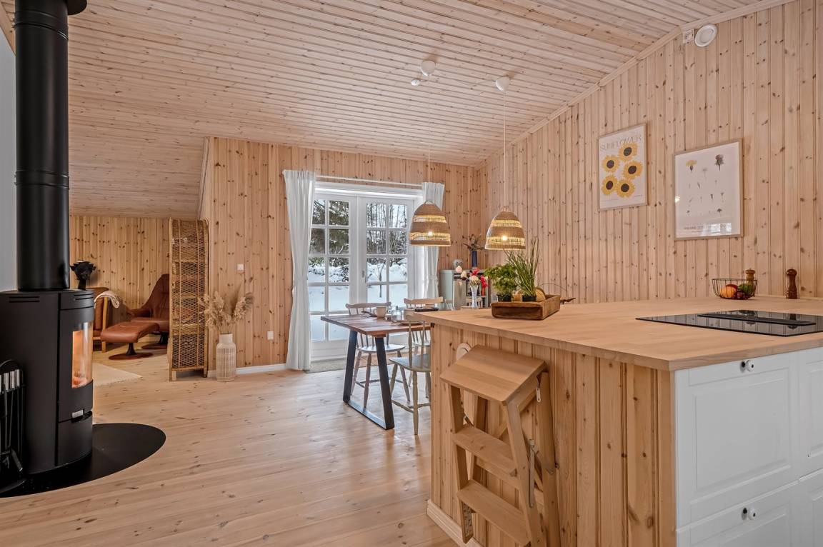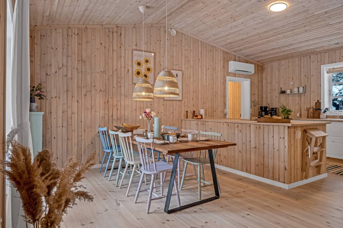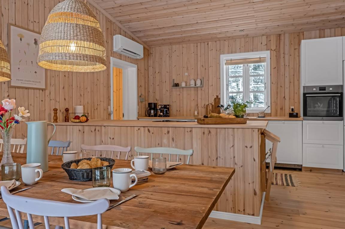 Das Ferienhaus eignet sich für 8 Personen. Die Ferienunterkunft hat eine Wohnfläche von 115 m² und wurde 1966 gebaut. 2025 wurde die Ferienunterkunft renoviert. Haustiere dürfen nicht mitgebracht werden. In der Ferienunterkunft ist eine energiesparende Luft zu Luft Wärmepumpe installiert. Die Ferienunterkunft ist mit Waschmaschine ausgestattet. Tiefkühlmöglichkeit mit 74 Liter Nutzinhalt. Es gibt außerdem einen Kaminofen. Für die jüngsten Feriengäste ist 1 Kinderhochstuhl vorhanden.