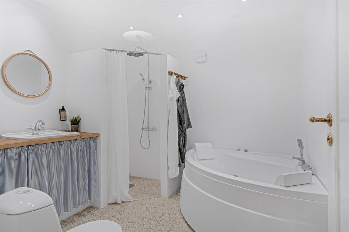 DraußenDie Ferienunterkunft liegt auf einem 1190 m² großen Gartengrundstück. Die Entfernung zum Meer beträgt 680 m. Die Entfernung zum Fjord beträgt 3530 m. Die nächste Einkaufsmöglichkeit liegt 2650 m entfernt. In einem Abstand von 13580 m gibt es einen Golfplatz. Es steht ein offenes Terrassenareal zur Verfügung. Außerdem gibt es überdachte Terrasse. Es steht ein Grill zur Verfügung. Es ist ein Ladestecker für Elektroautos installiert. Ladestecker Typ 2. Mit einer Ladeleistung von 11 kW. Parkplatz auf dem Grundstück.