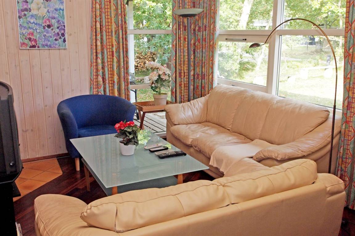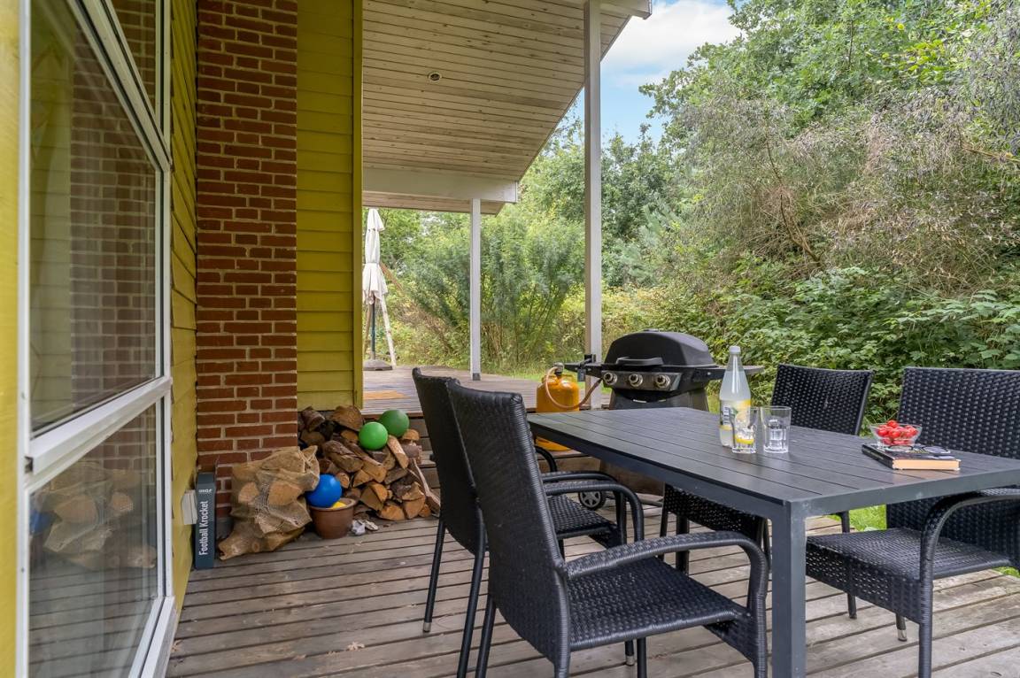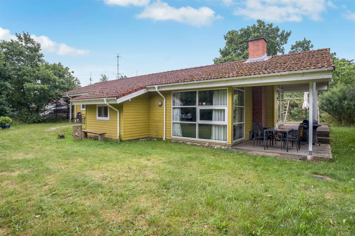 Ein geräumiges, nett eingerichtetes und möbliertes Ferienhaus aus Holz - in ruhiger Umgebung auf einem schönen Naturgrundstück mit Rasen, nur 100 m vom Wasser entfernt gelegen. Zum Ferienhaus gehören sowohl ein offenes als auch ein überdachtes Terrassenareal mit Gartenmöbeln.