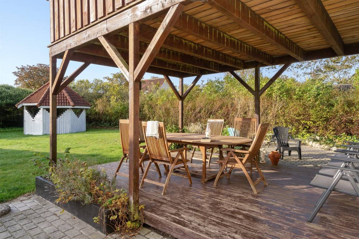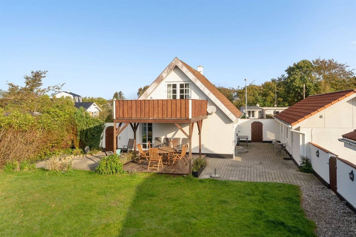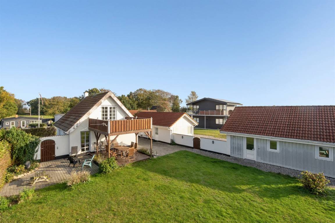 Ein nettes Stadthaus älteren Jahrgangs auf einem schönen Gartengrundstück - nur 100 m vom Wasser entfernt gelegen. Vom Wohnzimmer im 1. Stock gibt es direktem Zutritt zu einem guten Balkon mit Aussicht zum Meer. Auf dem Grundstück gibt es ein Gästehaus mit 3 Schlafzimmer, das mit 6 der insgesamt 10 Schlafplätze eingerichtet ist. Im Gästehaus gibt es auch ein großes Badezimmer mit Dusche. Ferner gibt es auch im separaten Gebäude einen guten Aktivitätsraum.