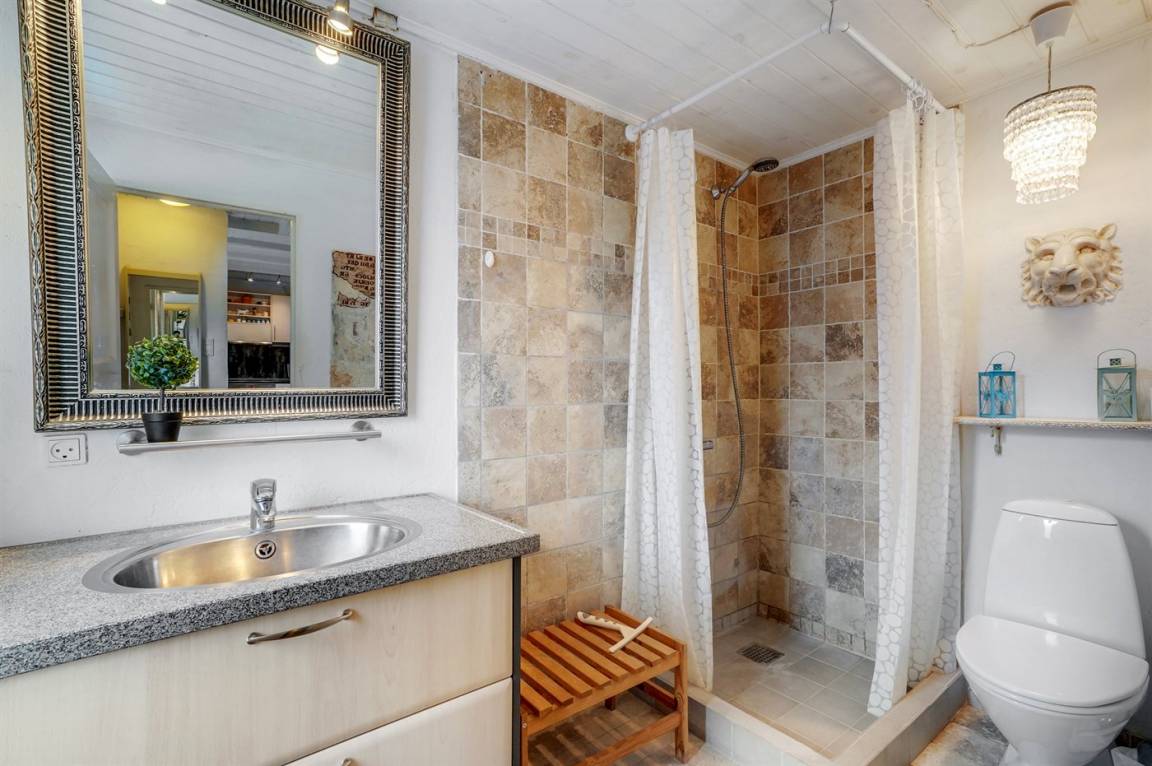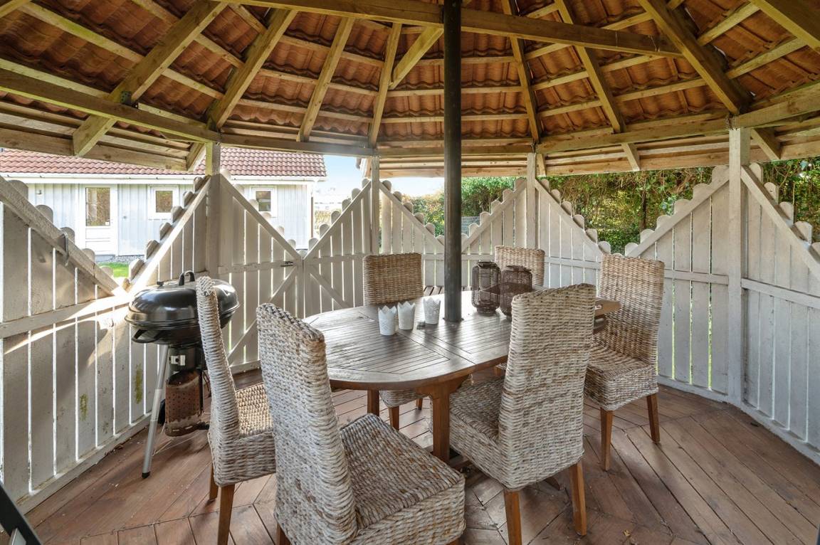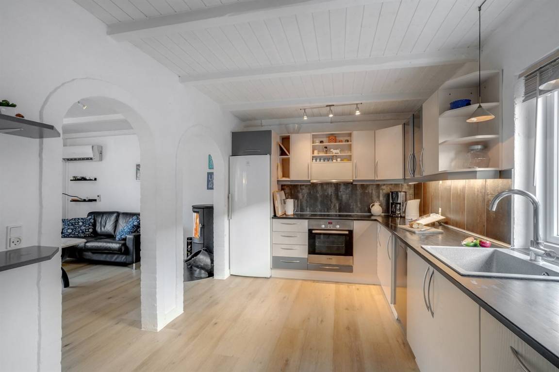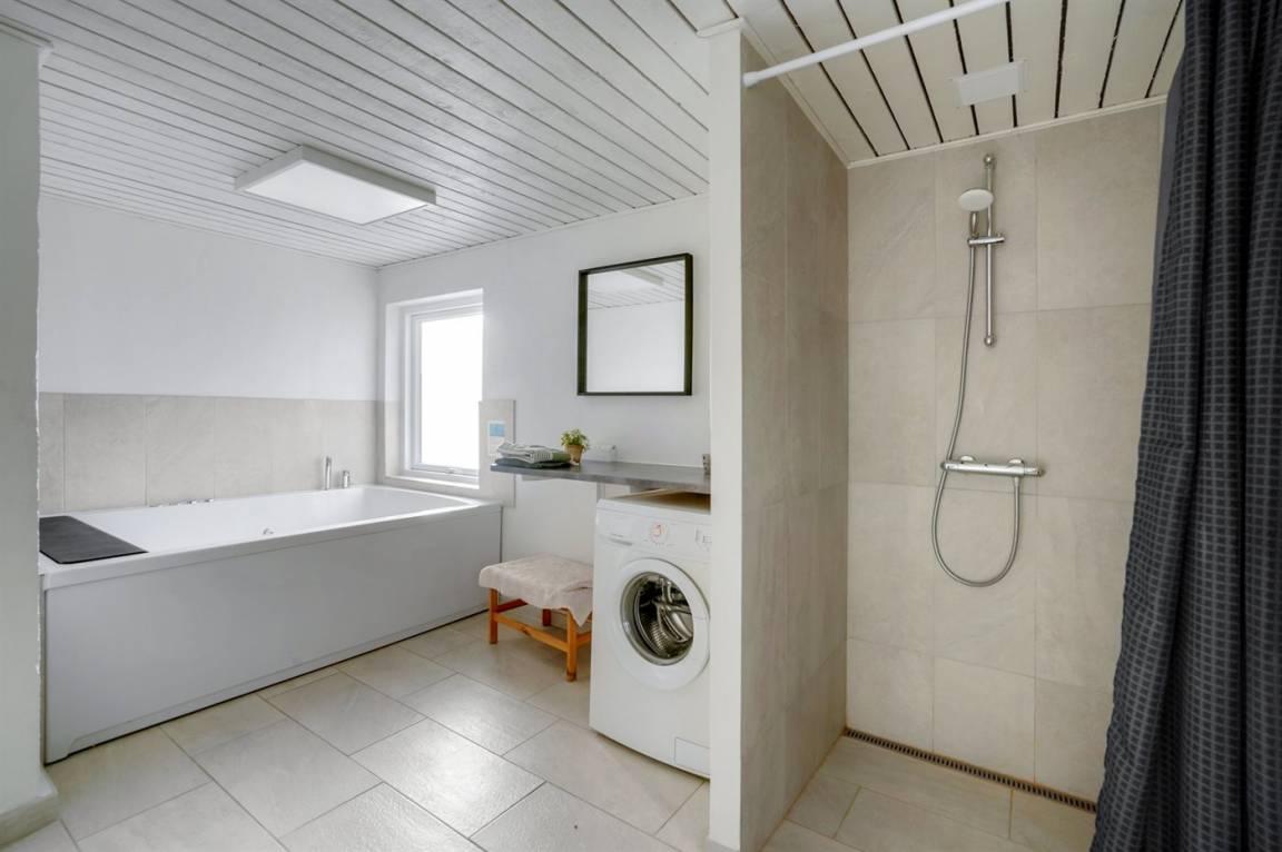Ein nettes Stadthaus älteren Jahrgangs auf einem schönen Gartengrundstück - nur 100 m vom Wasser entfernt gelegen. Vom Wohnzimmer im 1. Stock gibt es direktem Zutritt zu einem guten Balkon mit Aussicht zum Meer. Auf dem Grundstück gibt es ein Gästehaus mit 3 Schlafzimmer, das mit 6 der insgesamt 10 Schlafplätze eingerichtet ist. Im Gästehaus gibt es auch ein großes Badezimmer mit Dusche. Ferner gibt es auch im separaten Gebäude einen guten Aktivitätsraum.