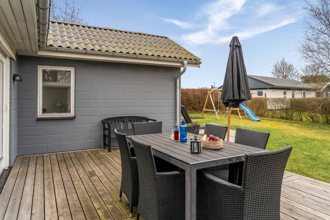 Nettes Ferienhaus in ruhiger Lage am Ende einer Sackgasse, auf einem Grundstück mit Platz zum Entspannen und Spielen. Zum Haus gehört ein Geräteraum mit Spülbecken, zur Reinigung von frisch gefangenem Fisch.