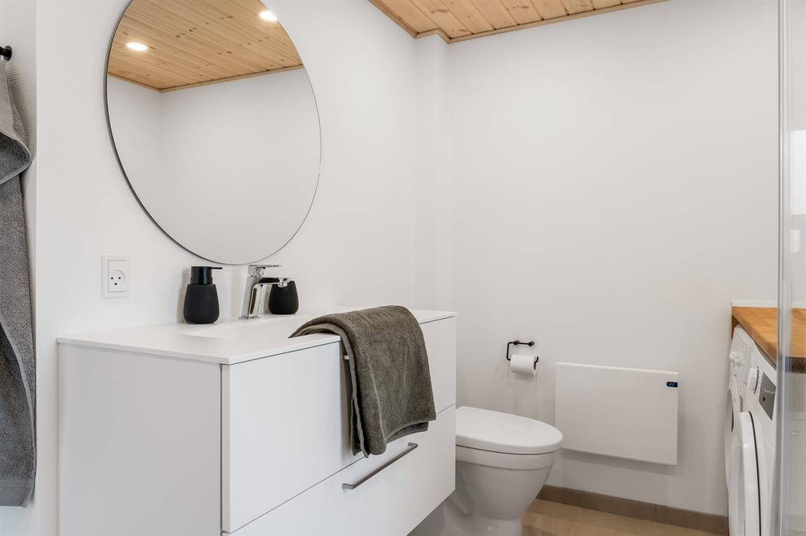 WC und BadEs gibt 1 Badezimmer mit Duschnische und 1 Toilette.. Fußbodenheizung in 1 Badezimmer. Außerdem gibt es einen Wickelplatz.