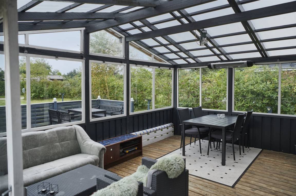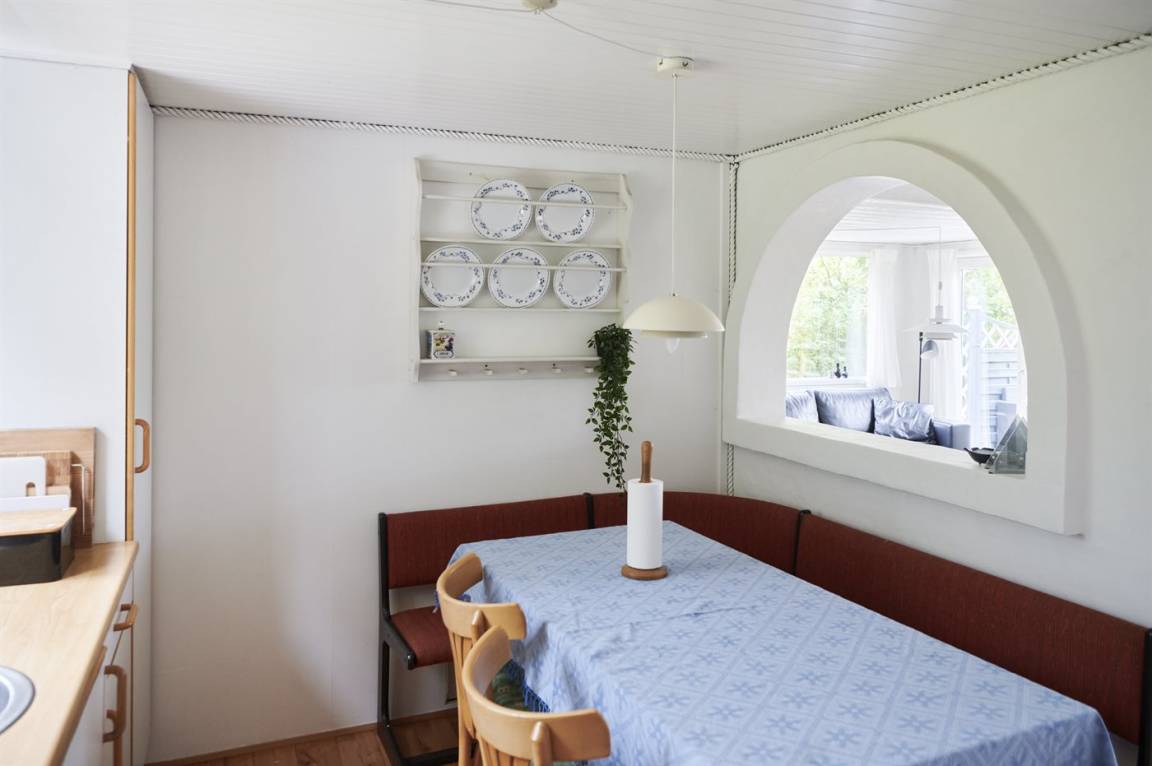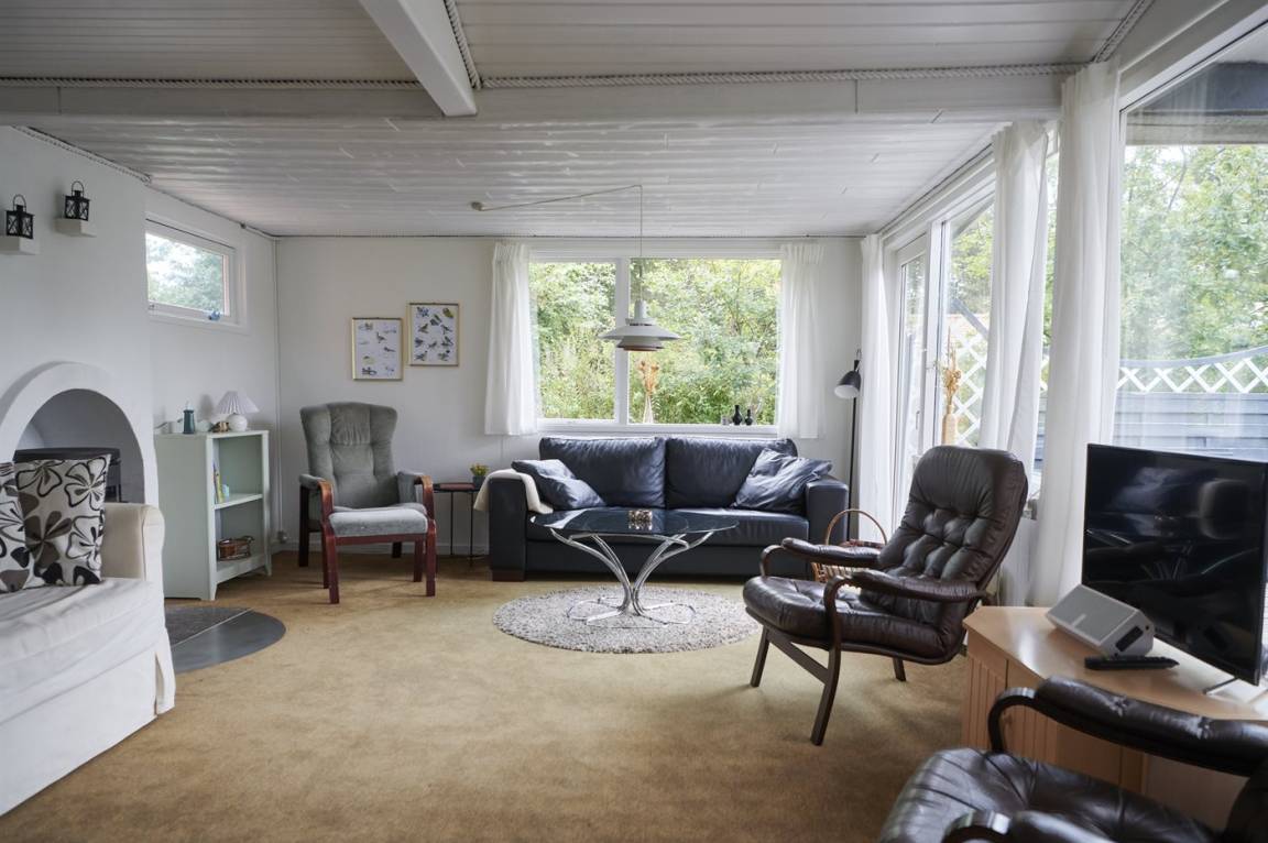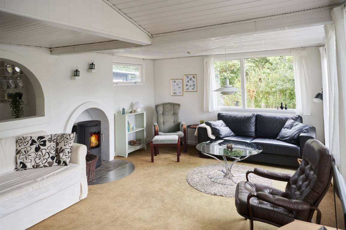 Das Ferienhaus selbst ist trotz seines höheren Alters in gutem Zustand. Die Raumaufteilung ist sehr gut und eignet sich gut für zum Beispiel eine Familie mit Kindern. Zum Haus gehört eine schöne, abgeschiedene Terrassenfläche und ein feiner Wintergarten, wo man die herrlichen Sommerabende genießen kann. Die ruhige Umgebung rund um Fruerlund liegt nur etwa 2000 Meter vom Stadtzentrum von Øster Hurup entfernt, wo es im Sommer viel Leben und Atmosphäre gibt. Hier gibt es eine schöne Hafenumgebung, gute Einkaufsmöglichkeiten und viele Eisdielen, Cafés usw., die entlang der Hauptstraße liegen.