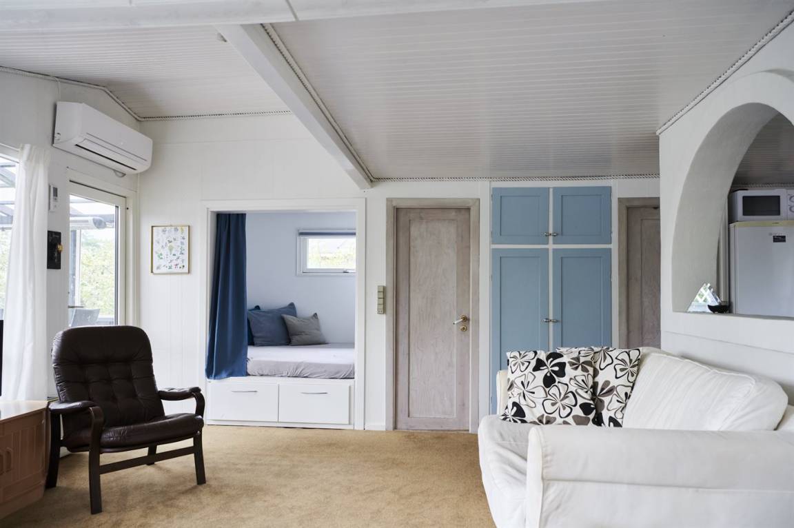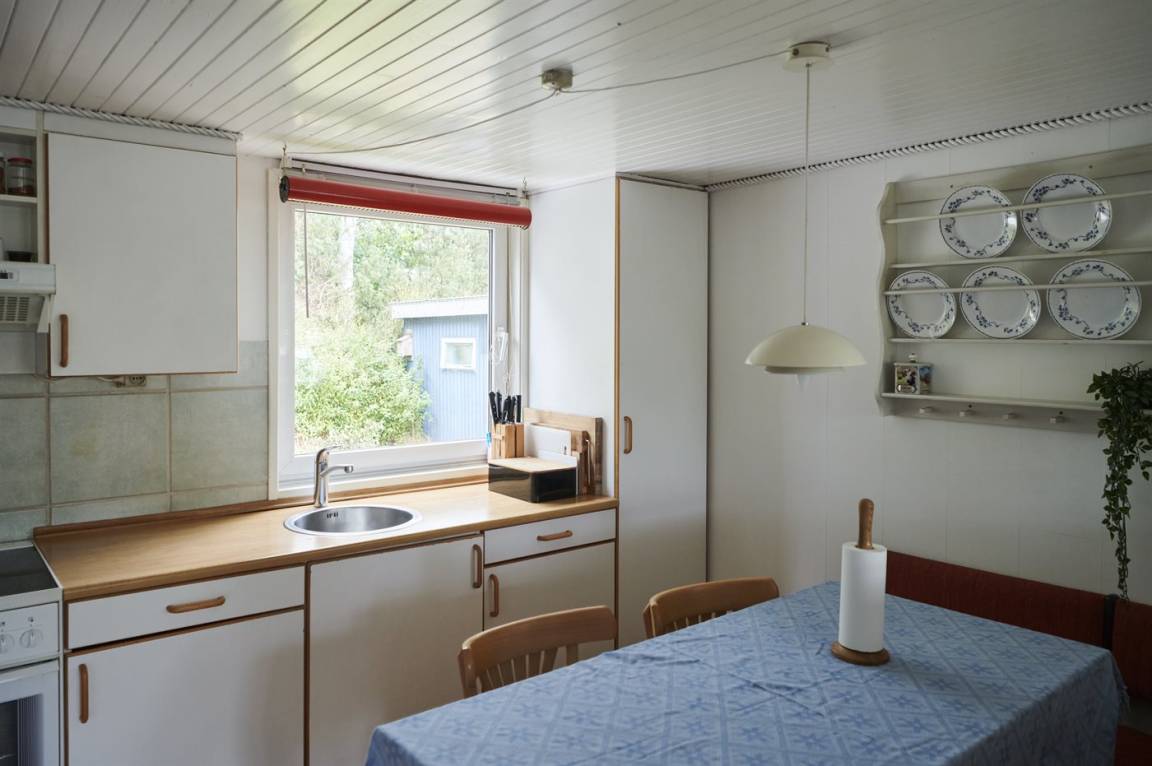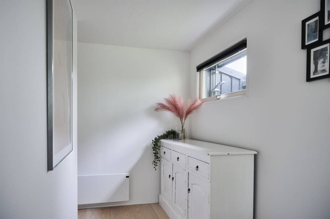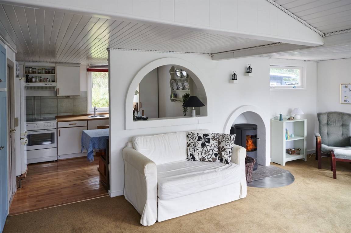 Das Ferienhaus selbst ist trotz seines höheren Alters in gutem Zustand. Die Raumaufteilung ist sehr gut und eignet sich gut für zum Beispiel eine Familie mit Kindern. Zum Haus gehört eine schöne, abgeschiedene Terrassenfläche und ein feiner Wintergarten, wo man die herrlichen Sommerabende genießen kann. Die ruhige Umgebung rund um Fruerlund liegt nur etwa 2000 Meter vom Stadtzentrum von Øster Hurup entfernt, wo es im Sommer viel Leben und Atmosphäre gibt. Hier gibt es eine schöne Hafenumgebung, gute Einkaufsmöglichkeiten und viele Eisdielen, Cafés usw., die entlang der Hauptstraße liegen.