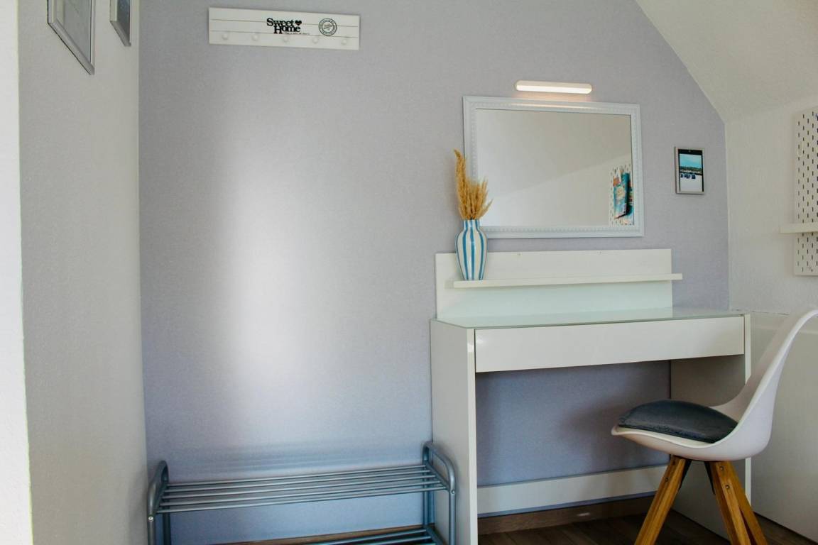 Die Hager Koje ist ein liebevoll und modern eingerichtetes Ferienhaus für bis zu 6 Personen, das nordischen Charme mit zeitgemäßem Komfort verbindet. Es verfügt über drei gemütliche Schlafzimmer, die jeweils mit einem eigenen Fernseher ausgestattet sind. Perfekt für entspannte Abende. Der großzügige Wohnbereich lädt zum Verweilen ein, und in der voll ausgestatteten Küche finden Sie alles, was Sie zum Kochen brauchen. Neben einem modernen Badezimmer steht Ihnen auch ein praktisches Gäste-WC zur Verfügung. Der gepflegte Garten mit Terrasse und Gemüse Hochbeeten bietet viel Platz zum Entspannen und Genießen. Die Hager Koje ist ideal für Familien, Paare oder Freunde, die Wert auf Stil, Komfort und eine gemütliche Atmosphäre legen. Wir freuen uns darauf, Sie willkommen zu heißen!