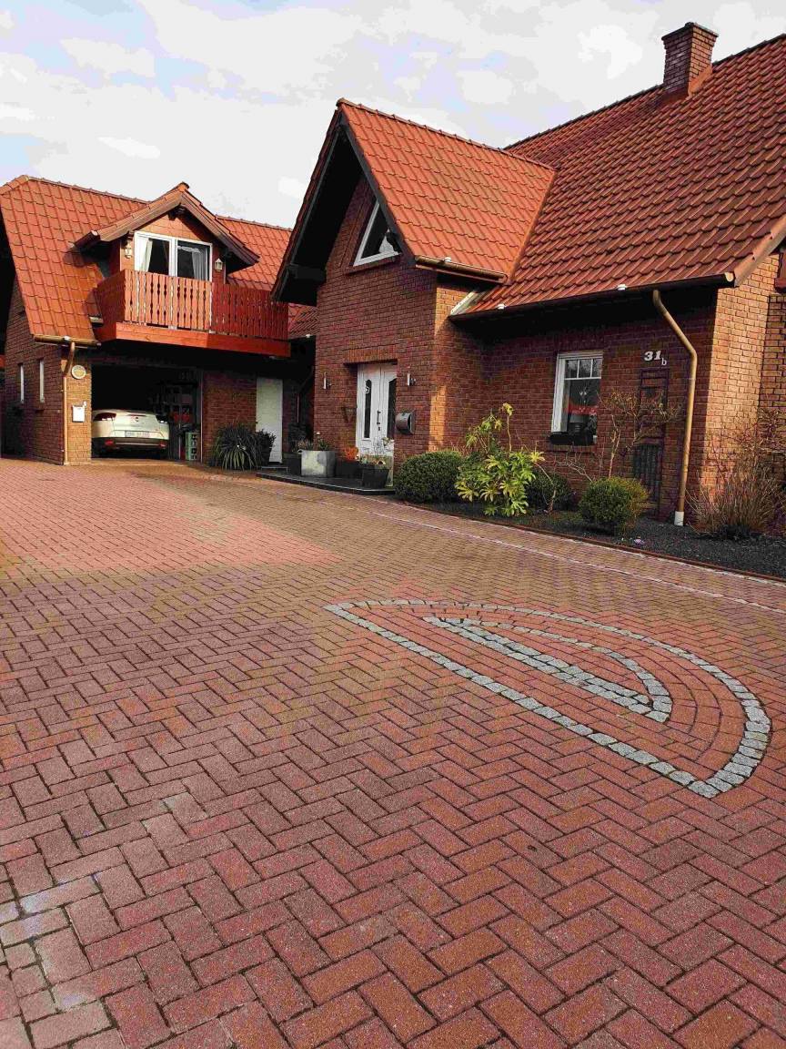 Der Parkplatz befindet sich direkt am Haus und ist markiert.