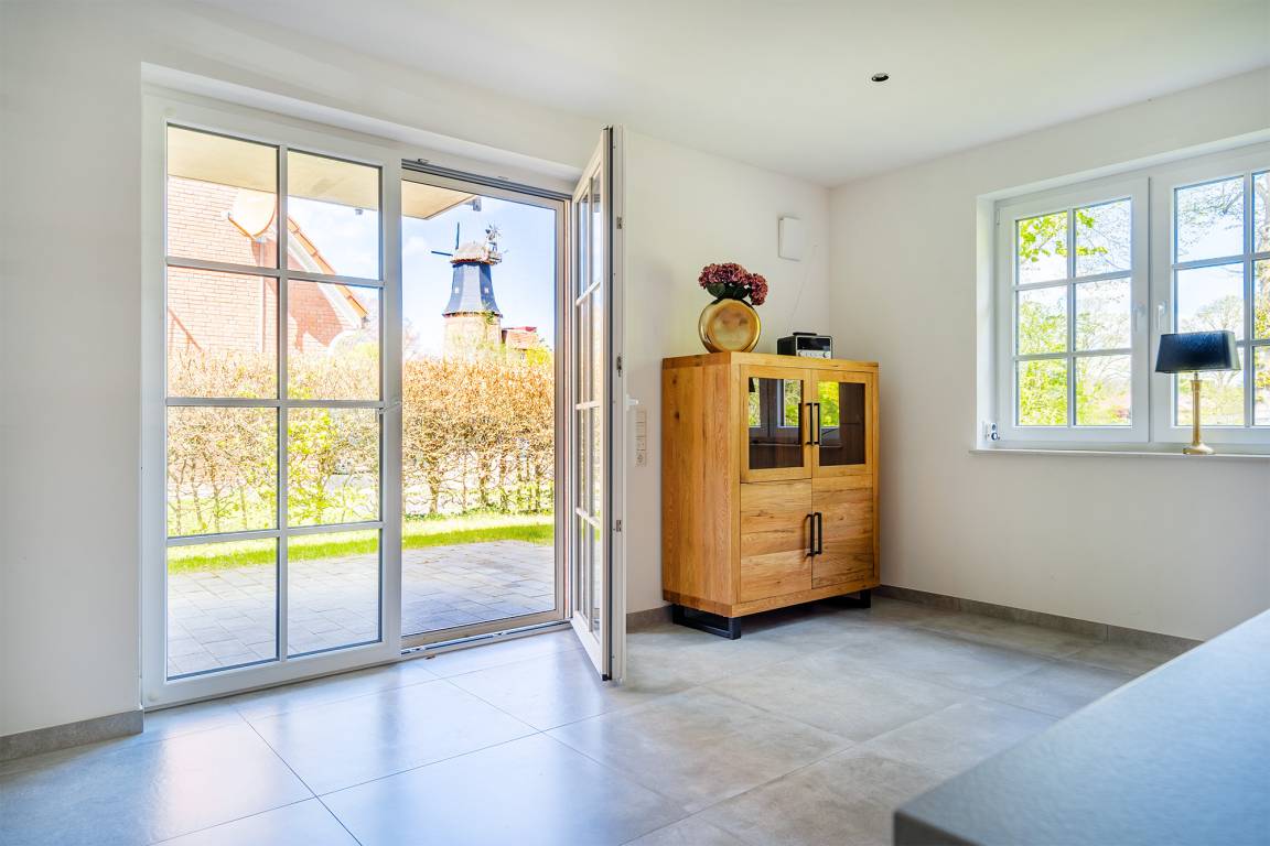 Unsere Wohnung "Mühlenblick 2", die sich direkt an der Hager Mühle und dem Schloss Nordeck im Luftkurort Hage befindet, verfügt auf 90qm über zwei geräumige Schlafzimmer mit bequemen Boxspringbetten und ausreichend Ablagefläche, ein Tageslichtbad mit ebenerdiger Dusche sowie ein zusätzliches Gäste-WC. Im hellen und gemütlichen Wohn-Ess-Bereich finden Sie genügend Platz für den gemeinsamen Urlaub mit Freunden oder der Familie sowie eine voll ausgestattete Küchenzeile. Von hier aus haben Sie Zugang zum Garten mit Terrasse, in dem sich auch Ihr Vierbeiner sicher wohl fühlen wird. Ein weiteres Highlight im Hausflur ist die gemeinschaftlich nutzbare Bibliothek mit Lese- und Spielmaterial. Selbstverständlich steht Ihnen ein eigener Parkplatz am Haus, sowie ein Abstellraum für Fahrräder zur Verfügung.