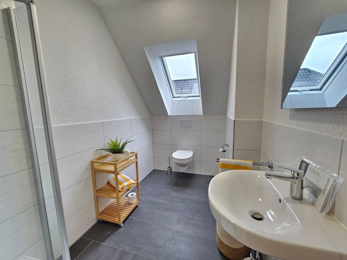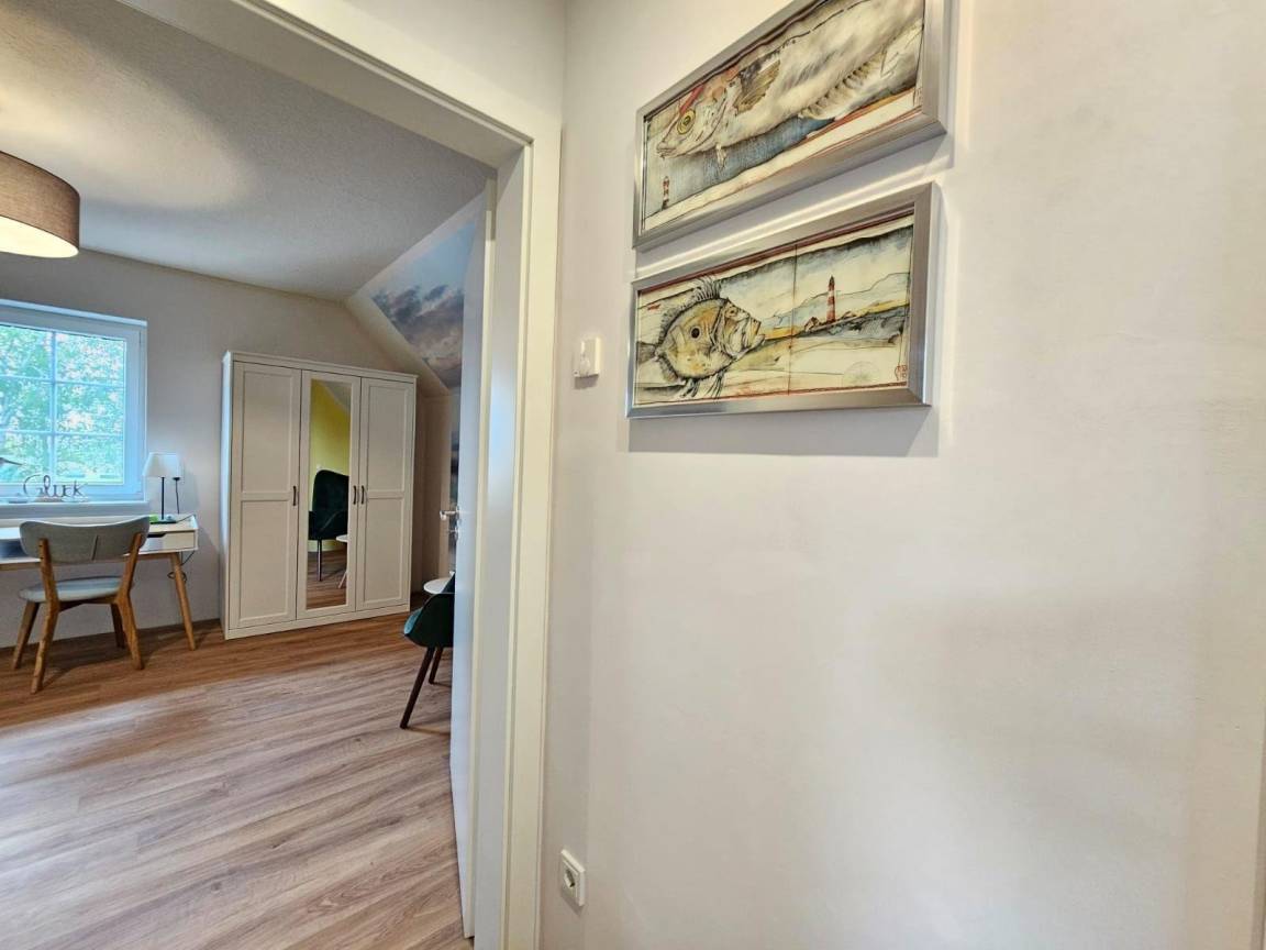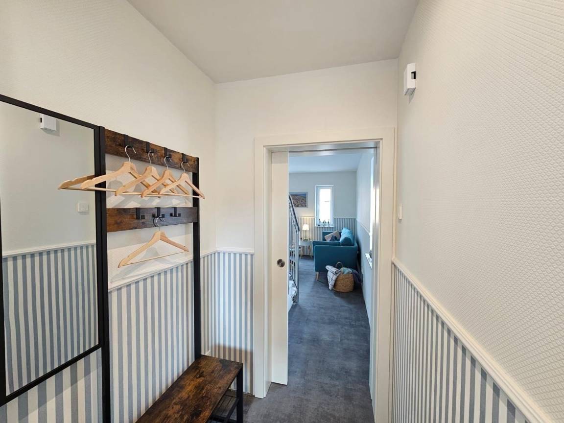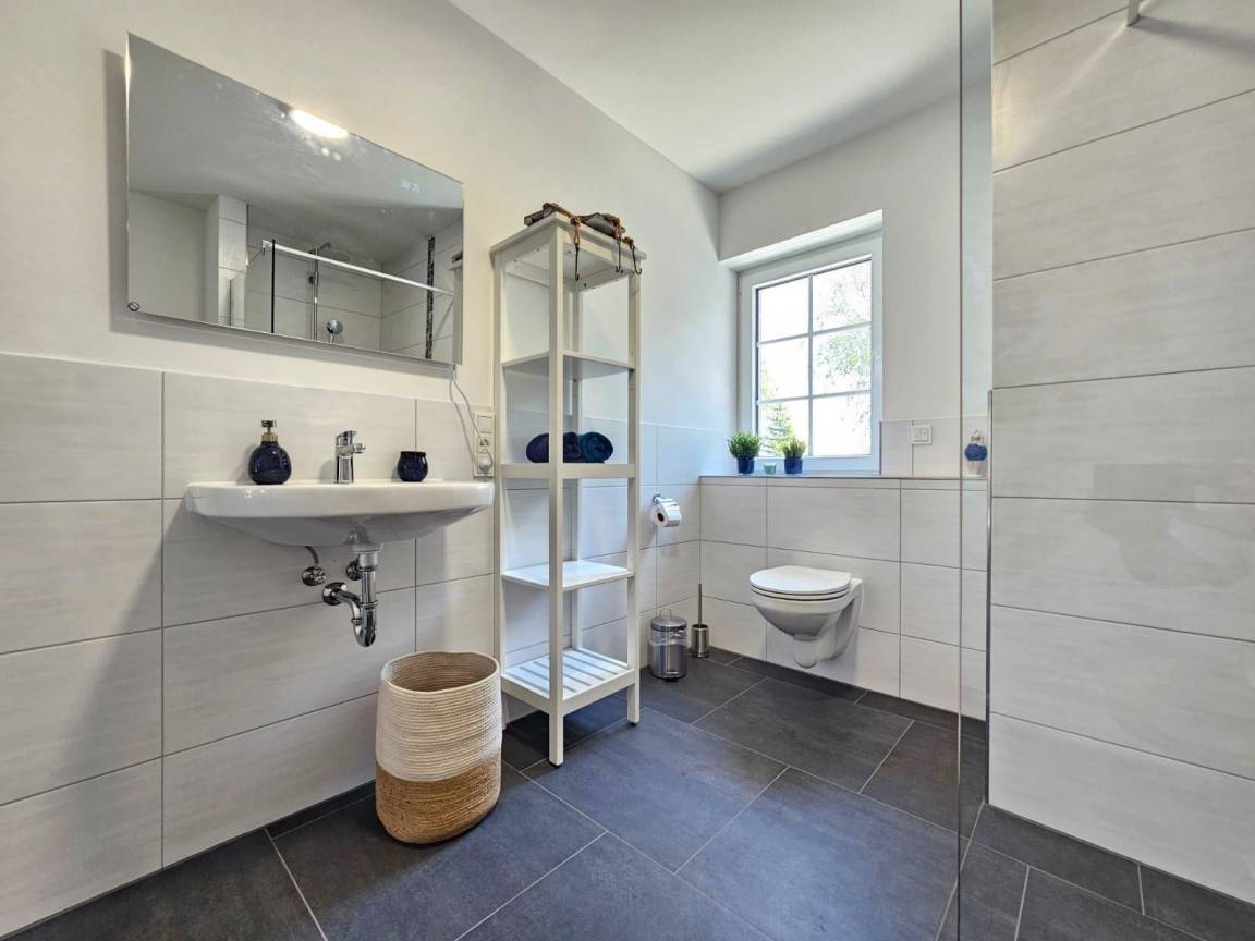 Das moderne Ferienhaus am Deich, ideal für bis zu sechs Personen, überzeugt durch eine stilvolle, lichtdurchflutete Einrichtung. Der großzügige Wohnbereich ist mit bequemen Sofas, einem Flachbild-TV und großen Fenstern ausgestattet, die für ein angenehmes Raumgefühl sorgen. Die voll ausgestattete Küche lässt keine Wünsche offen und umfasst ein Cerankochfeld, Backofen, Kühlschrank mit Gefrierfach, Geschirrspüler und verschiedene Kaffeemaschinen. Drei gemütliche Schlafzimmer, zwei mit Doppelbetten und eines mit zwei Einzelbetten, garantieren erholsame Nächte. Das moderne Badezimmer bietet die Wahl zwischen Dusche oder Badewanne sowie eine Infrarotkabine zur Entspannung. Eine Waschmaschine ist ebenfalls vorhanden. Das Ferienhaus ist barrierefreundlich und rollstuhlgerecht im Erdgeschoss konzipiert. Bettwäsche und Handtücher können optional hinzugebucht werden. WLAN ist verfügbar.