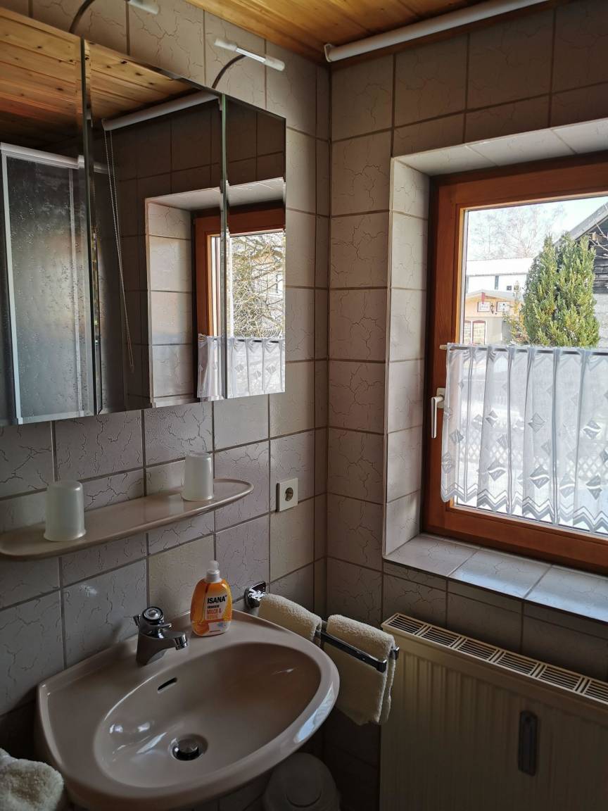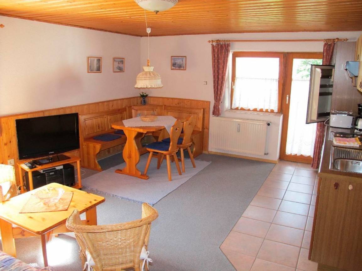 Die 50 qm große Wohnung ist sehr rustikal eingerichtet und kann bis zu 4 Personen in ihrem Urlaub im Bayerischen Wald beherbergen.
