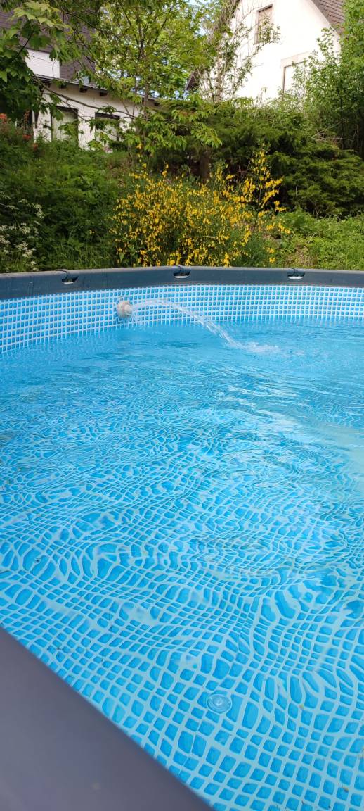 Schwimmen im Pool (Durchmesser 5 m/ Höhe 1,32 m)