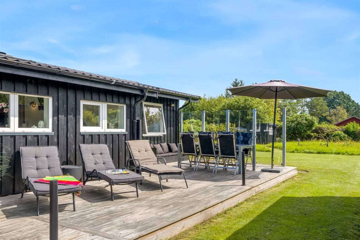 DraußenDie Ferienunterkunft liegt auf einem 1254 m² großen Gartengrundstück. Die Entfernung zum Meer beträgt 1000 m. Die Entfernung zum Fjord beträgt 4000 m. Die nächste Einkaufsmöglichkeit liegt 3700 m entfernt. In einem Abstand von 3560 m gibt es einen Golfplatz. Es steht ein offenes Terrassenareal zur Verfügung. Außerdem gibt es überdachte Terrasse.Lagerfeuerstelle. Windschutzhütte. Es steht ein Grill zur Verfügung. Parkplatz auf dem Grundstück.