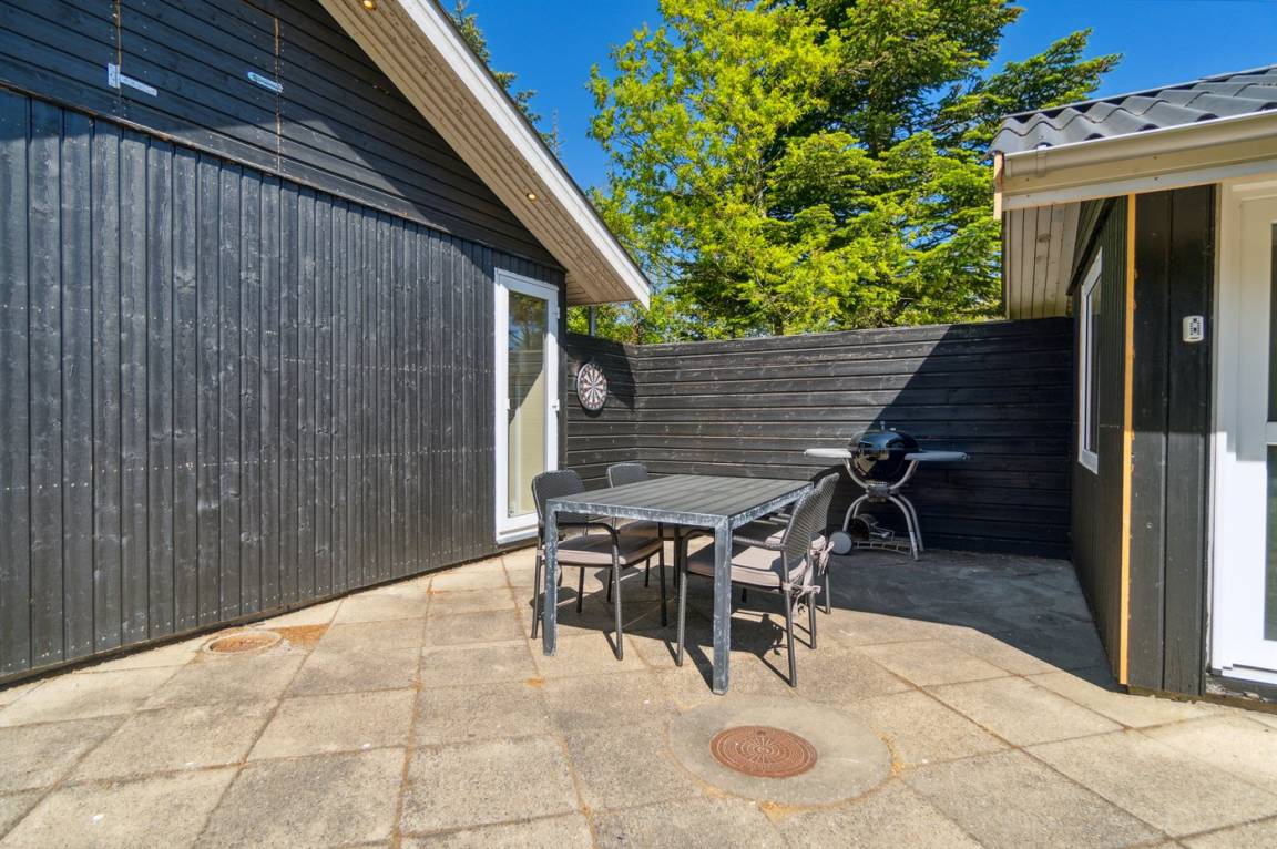 DraußenDie Ferienunterkunft liegt auf einem 1200 m² großen Naturgrundstück. Die Entfernung zum Meer beträgt 300 m. Die nächste Einkaufsmöglichkeit liegt 500 m entfernt. Es steht ein 45 m² Terrassenareal zur Verfügung. Es steht ein Grill zur Verfügung. Parkplatz auf dem Grundstück.