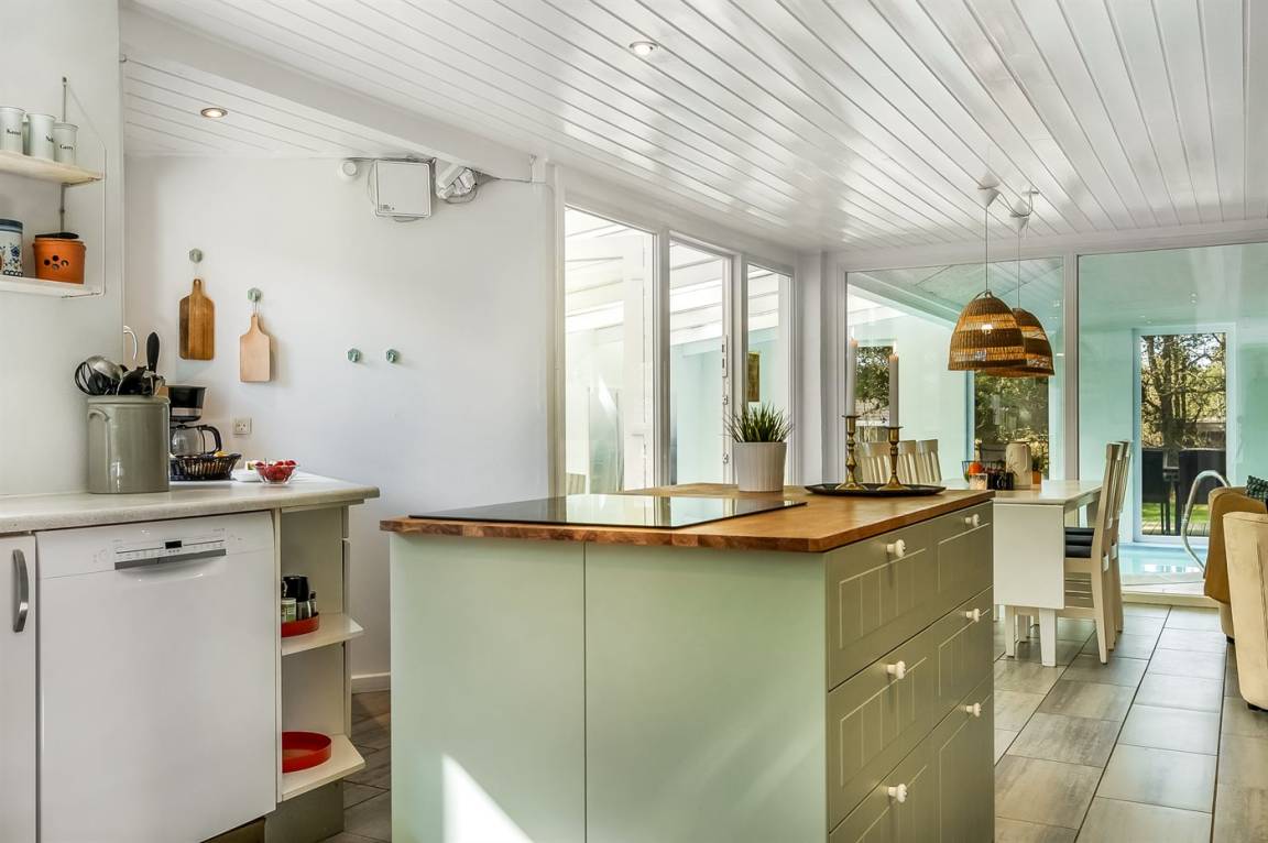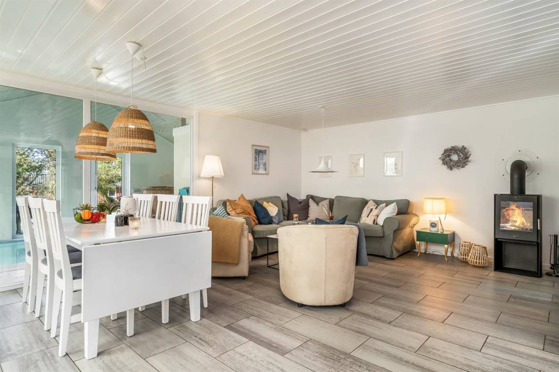 Ein schönes und geräumiges Ferienhaus mit einer Poolabteilung, in Nordjütland. Das Ferienhaus liegt in Hou an der Ostsee, ca. 350 m vom Meer entfernt.
