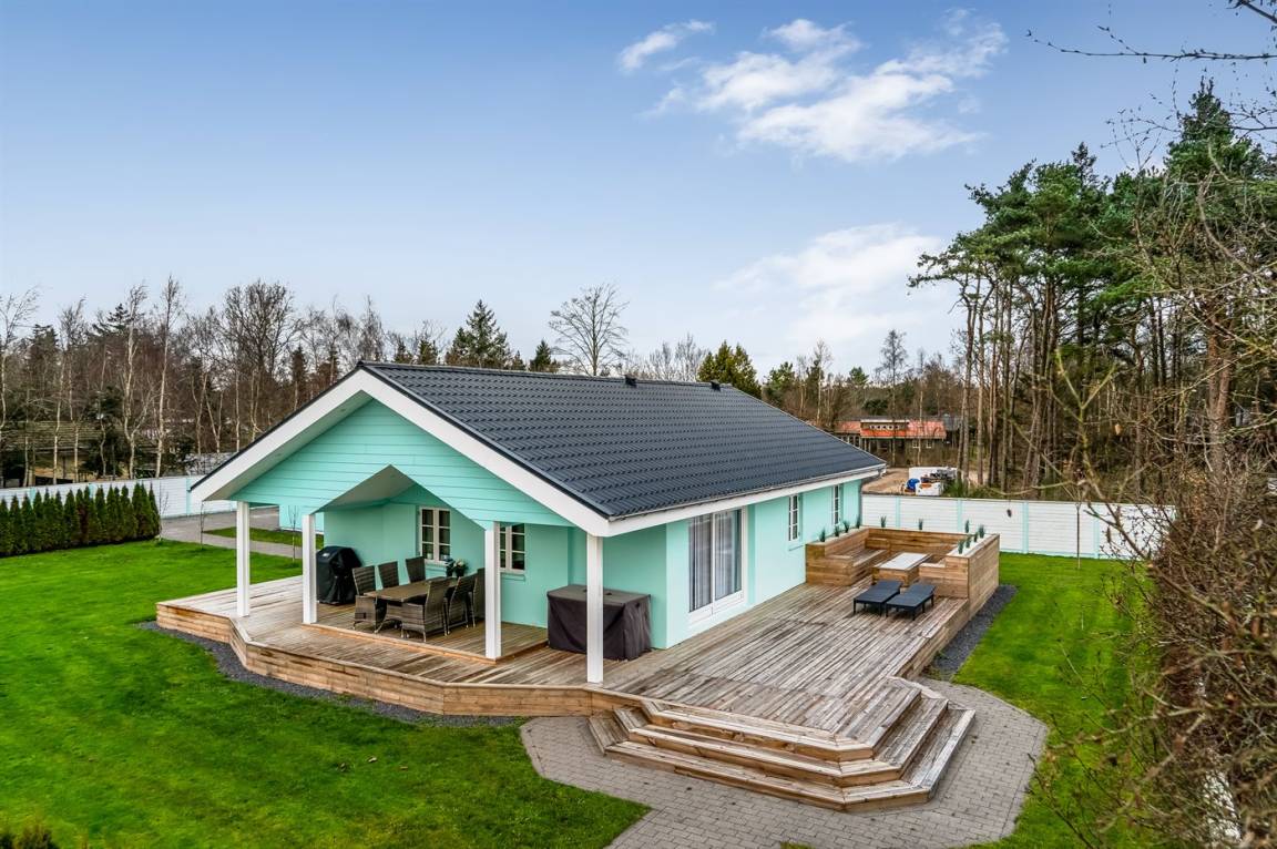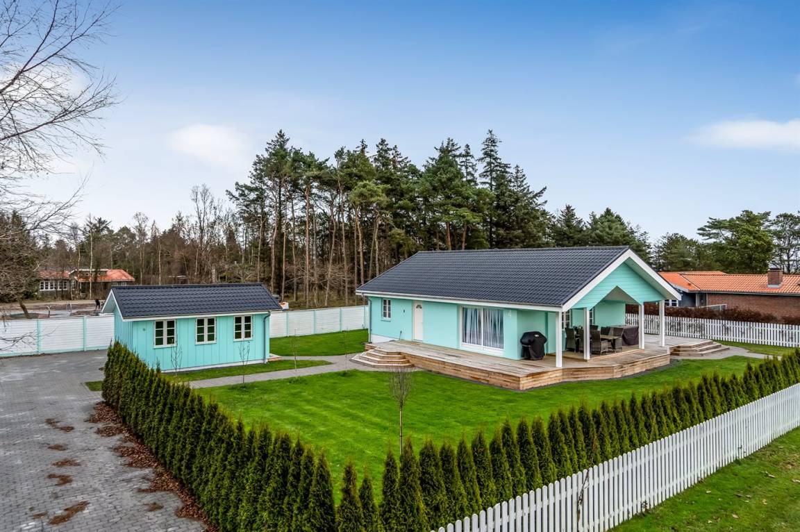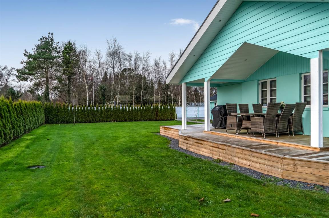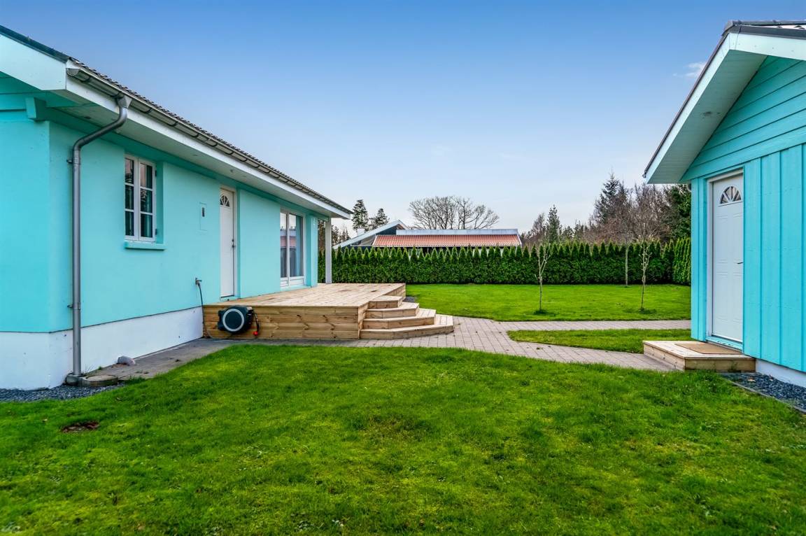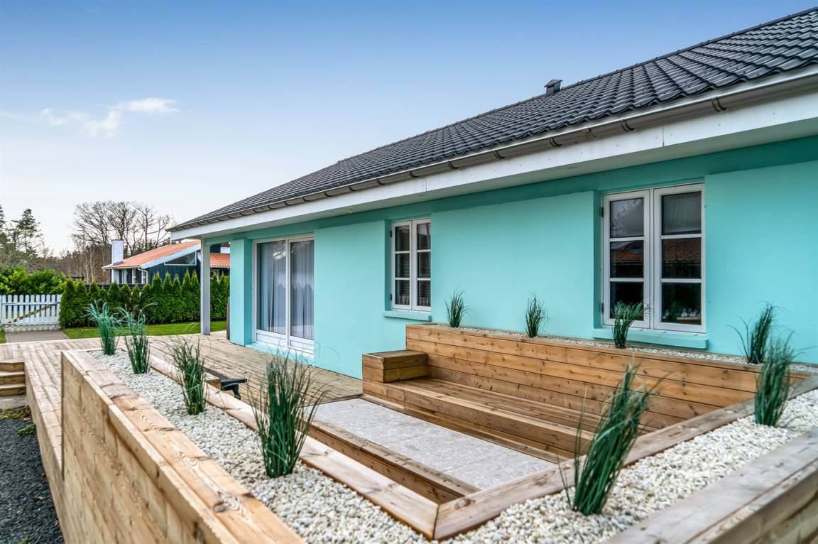 DraußenDie Ferienunterkunft liegt auf einem 1063 m² großen Gartengrundstück. Die Entfernung zum Meer beträgt 300 m. Die Entfernung zum Fjord beträgt 6300 m. Die nächste Einkaufsmöglichkeit liegt 1400 m entfernt. In einem Abstand von 5800 m gibt es einen Golfplatz. Es steht ein offenes Terrassenareal zur Verfügung. Außerdem gibt es überdachte Terrasse. Es steht ein Grill zur Verfügung. Parkplatz auf dem Grundstück.