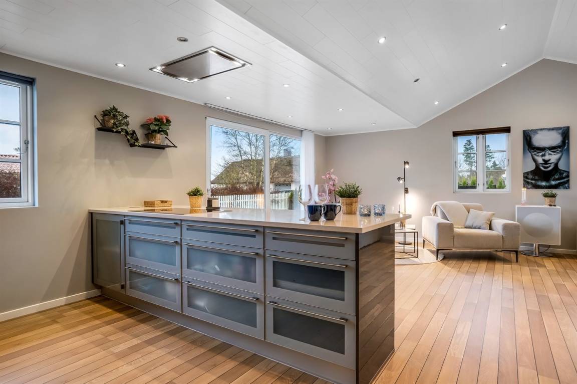 KücheDie Küche ist mit Kühlschrank ausgestattet. Außerdem gibt es 4 Induktions-Kochzonen, Umluftofen sowie Geschirrspüler. Fußbodenheizung in der Küche.