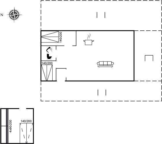 SchlafverhältnisseDie Schlafplätze verteilen sich auf 3 Schlafräume. 4 Schlafplätze in Doppelbetten. 4 Schlafplätze in Etagenbetten. 4 von diesen Schlafplätzen befinden sich im Gästehaus. Ferner steht ein Kinderbett zur Verfügung.