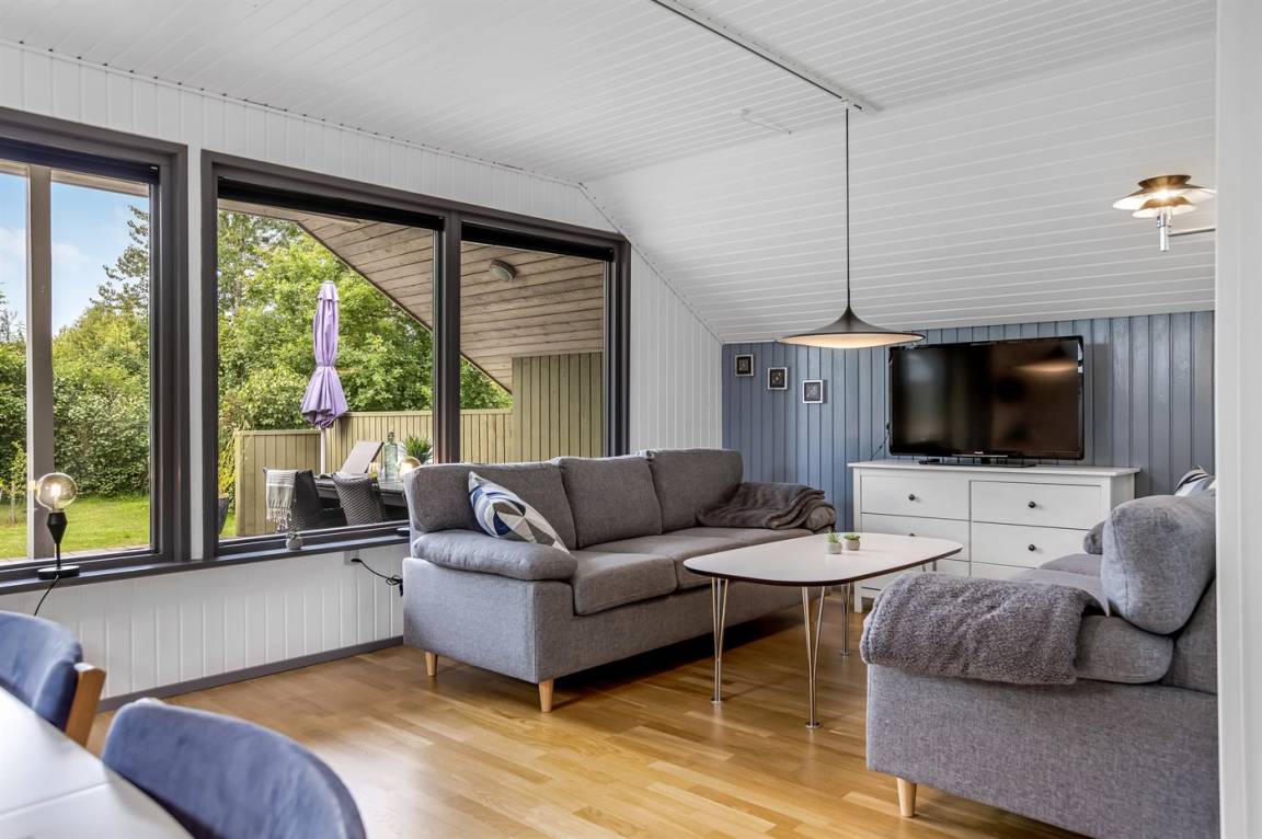DraußenDie Ferienunterkunft liegt auf einem 1297 m² großen Gartengrundstück. Die Entfernung zum Meer beträgt 1000 m. Die Entfernung zum Fjord beträgt 6700 m. Die nächste Einkaufsmöglichkeit liegt 1200 m entfernt. In einem Abstand von 6000 m gibt es einen Golfplatz. Es steht ein offenes Terrassenareal zur Verfügung. Außerdem gibt es überdachte Terrasse. Es ist ein Ladestecker für Elektroautos installiert. Ladestecker Typ 2. Mit einer Ladeleistung von 20 kW. Parkplatz auf dem Grundstück.