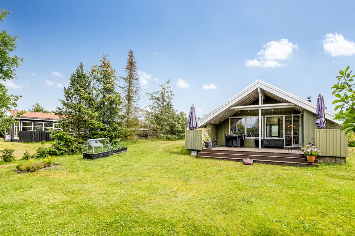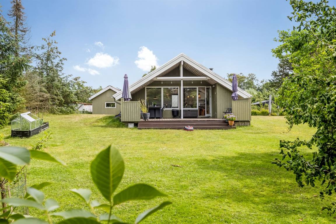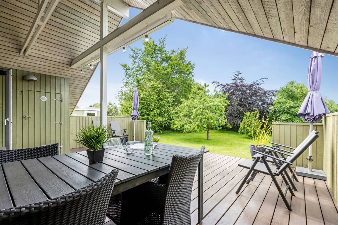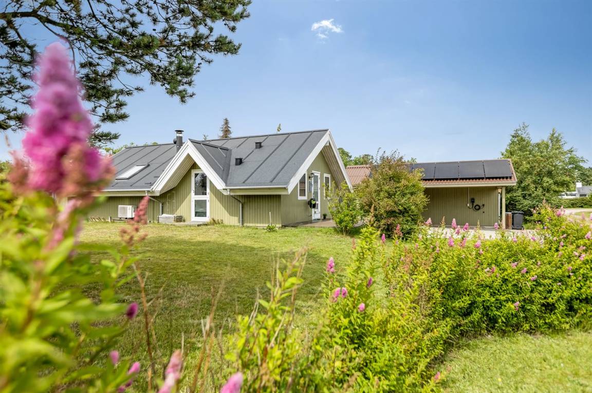 Schönes Ferienhaus mit Elektroautoladestation, auf einem großen, schönen Grundstück mit vielen Büschen und Bäumen gelegen, so du immer ein gemütliches Plätzchen finden kannst. Auf der gemütlichen Terrasse hast du die Möglichkeit, dich in der Sonne zu entspannen, und wenn es zu viel wird, kannst du dich auf den überdachten Teil der Terrasse setzen oder die Markise ausfahren.