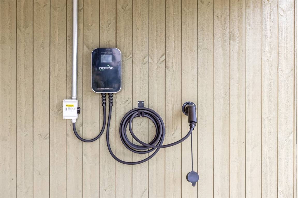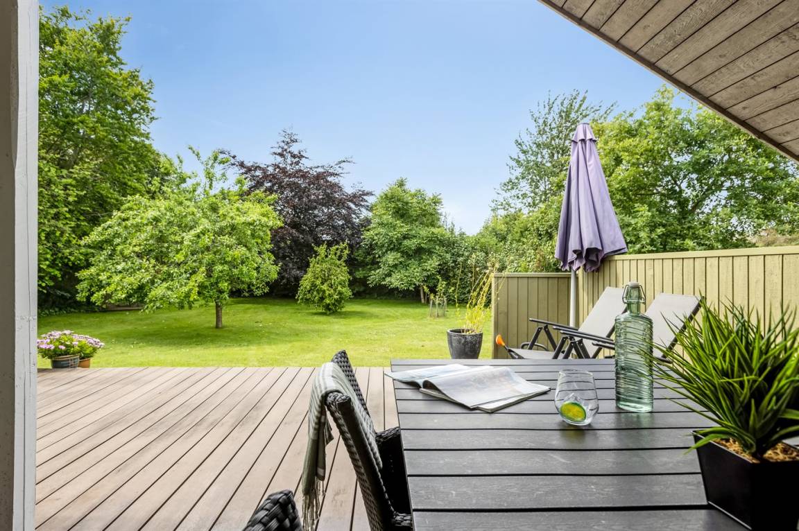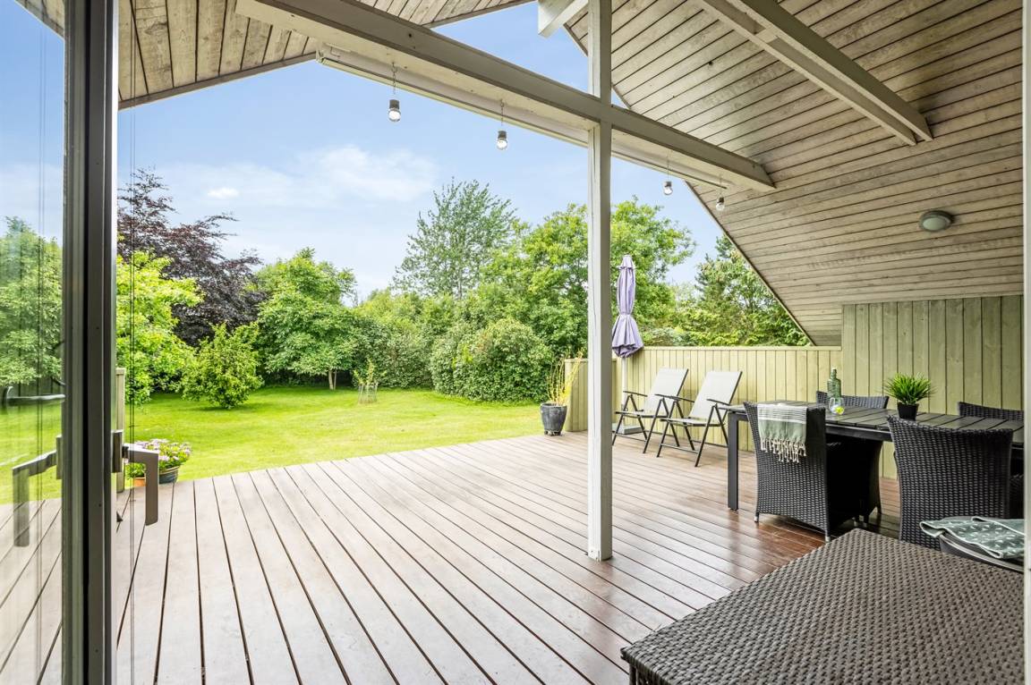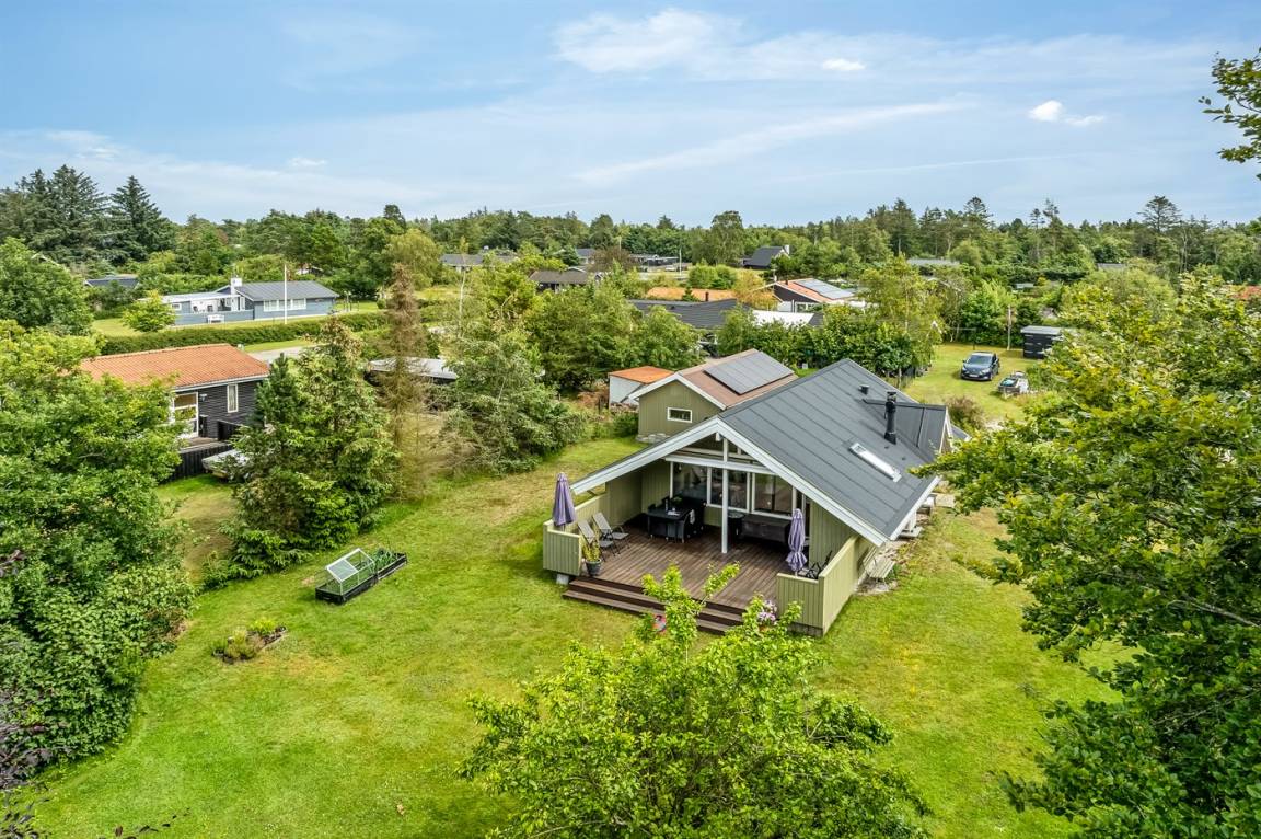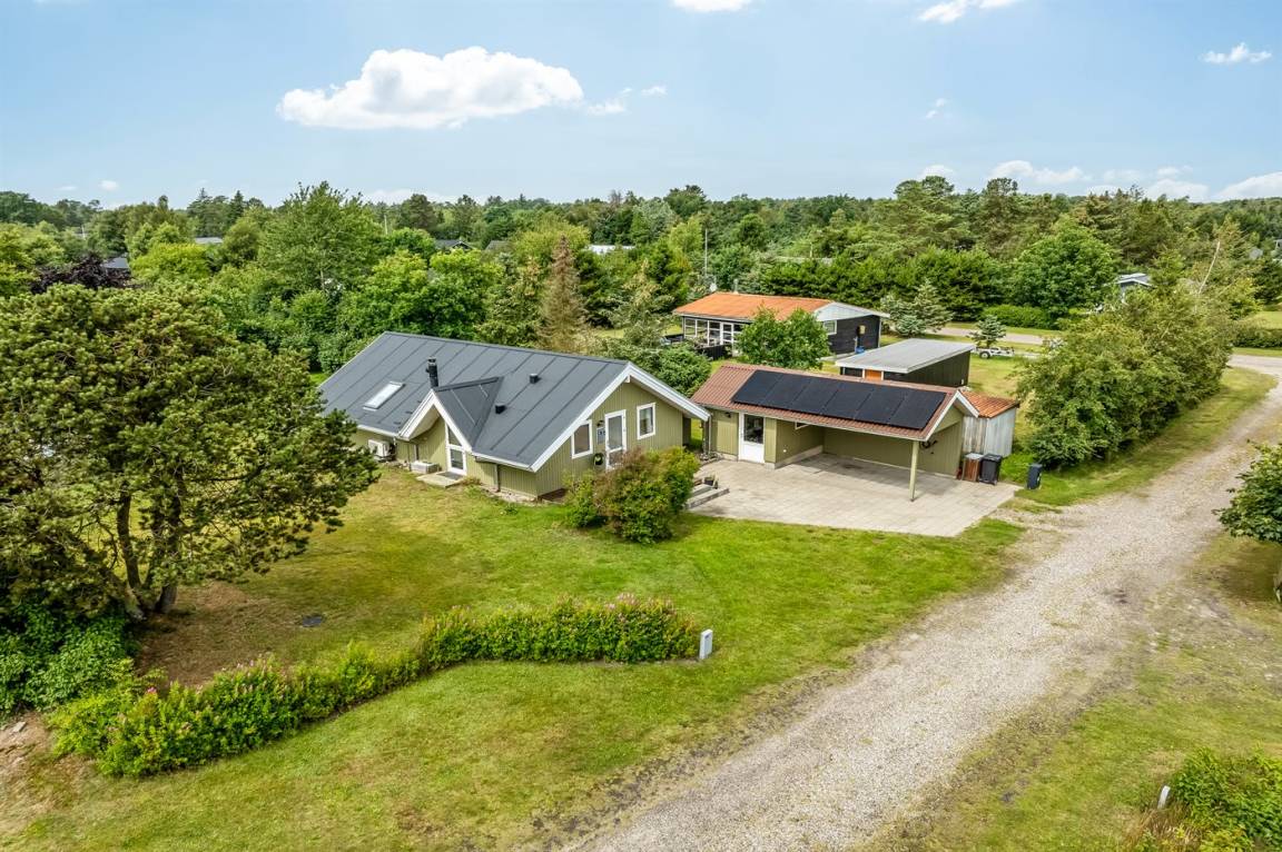 Schönes Ferienhaus mit Elektroautoladestation, auf einem großen, schönen Grundstück mit vielen Büschen und Bäumen gelegen, so du immer ein gemütliches Plätzchen finden kannst. Auf der gemütlichen Terrasse hast du die Möglichkeit, dich in der Sonne zu entspannen, und wenn es zu viel wird, kannst du dich auf den überdachten Teil der Terrasse setzen oder die Markise ausfahren.