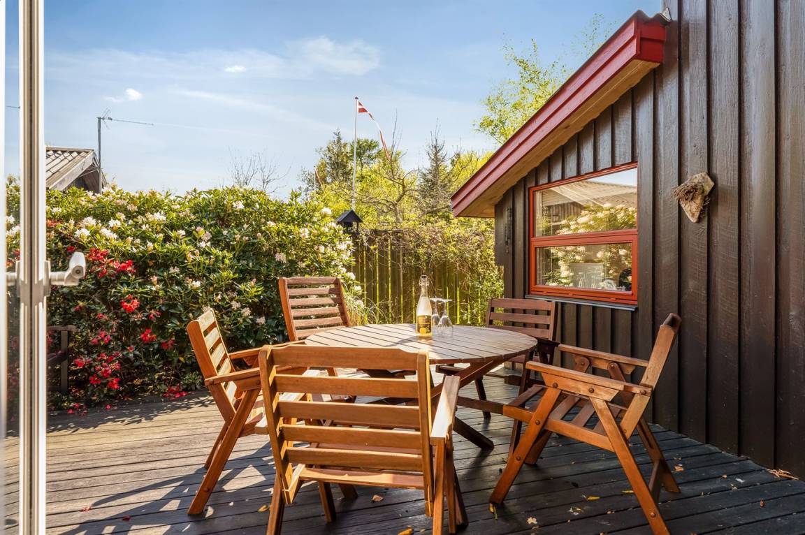 DraußenDie Ferienunterkunft liegt auf einem 1203 m² großen Gartengrundstück. Die Entfernung zum Meer beträgt 220 m. Die Entfernung zum Fjord beträgt 2420 m. Die nächste Einkaufsmöglichkeit liegt 2520 m entfernt. In einem Abstand von 1960 m gibt es einen Golfplatz. Es steht ein offenes Terrassenareal zur Verfügung. Außerdem gibt es überdachte Terrasse. Außendusche. Es steht ein Grill zur Verfügung. Parkplatz auf dem Grundstück.