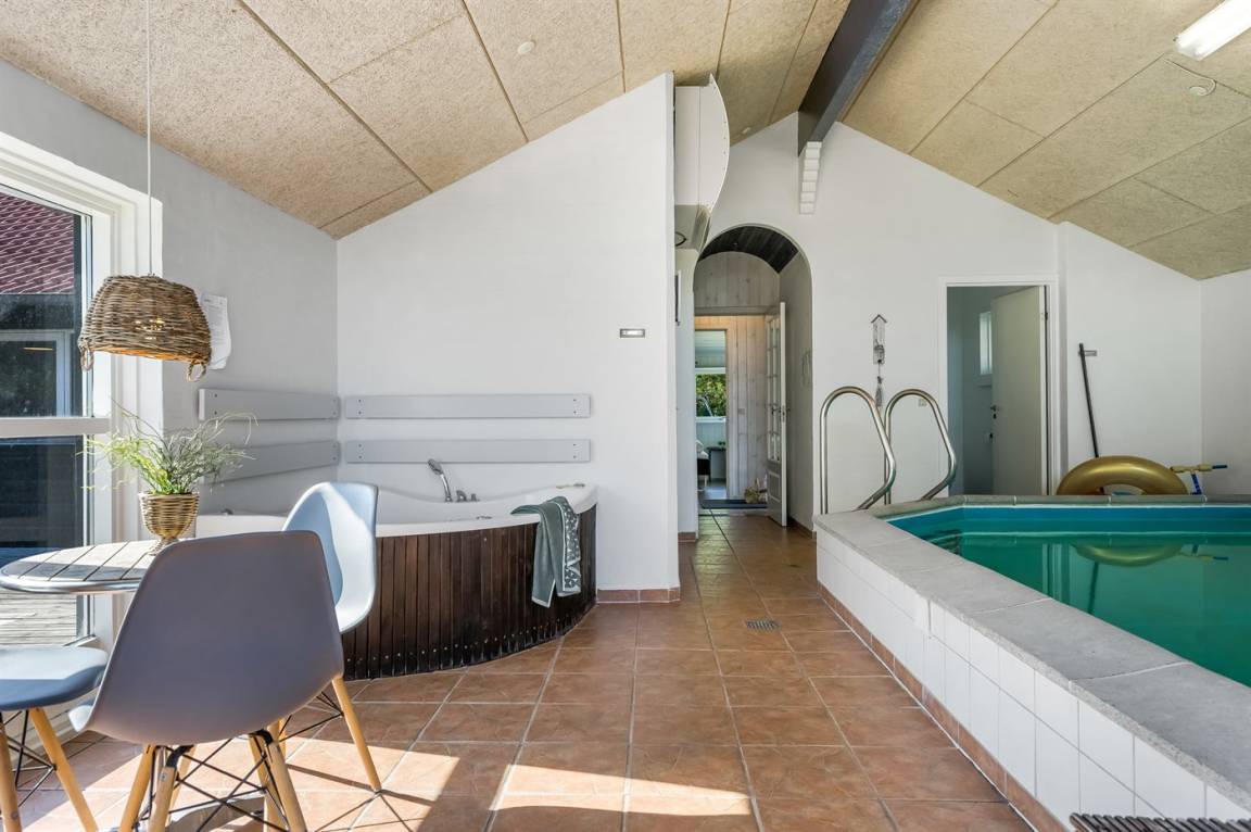 Schönes Pool-Ferienhaus in Hals. Hier könnt ihr einen Sprung ins Schwimmbad machen oder im Whirlpool entspannen. Genießt den Tag auf der Terrasse oder im Garten, wo genug Platz zum Ballspielen, Trampolinspringen, Rutschen auf der kleinen Rutsche oder vielleicht Schaukeln ist.