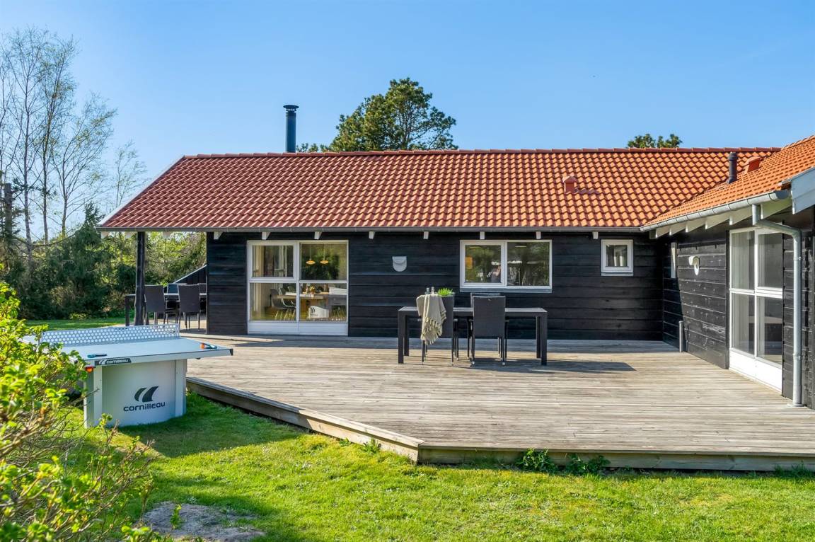 DraußenDie Ferienunterkunft liegt auf einem 1366 m² großen Gartengrundstück. Die Entfernung zum Meer beträgt 700 m. Die Entfernung zum Fjord beträgt 1700 m. Die nächste Einkaufsmöglichkeit liegt 1500 m entfernt. In einem Abstand von 1200 m gibt es einen Golfplatz. Es steht ein offenes Terrassenareal zur Verfügung. Außerdem gibt es überdachte Terrasse. Schaukel. Sandkasten. Trampolin. Fußballtor. Tischtennis. Kleine Rutsche. Es steht ein Grill zur Verfügung. Es ist ein Ladestecker für Elektroautos installiert. Ladestecker Typ 2. Mit einer Ladeleistung von 11 kW. Parkplatz auf dem Grundstück.