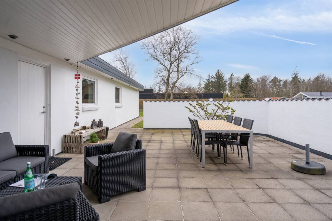 DraußenDie Ferienunterkunft liegt auf einem 4960 m² großen Gartengrundstück. Die Entfernung zum Meer beträgt 125 m. Die nächste Einkaufsmöglichkeit liegt 800 m entfernt. In einem Abstand von 7400 m gibt es einen Golfplatz. Es steht ein 70 m² Terrassenareal zur Verfügung. Geräteraum. Schaukel. Sandkasten. Es steht ein Grill zur Verfügung. Parkplatz auf dem Grundstück.