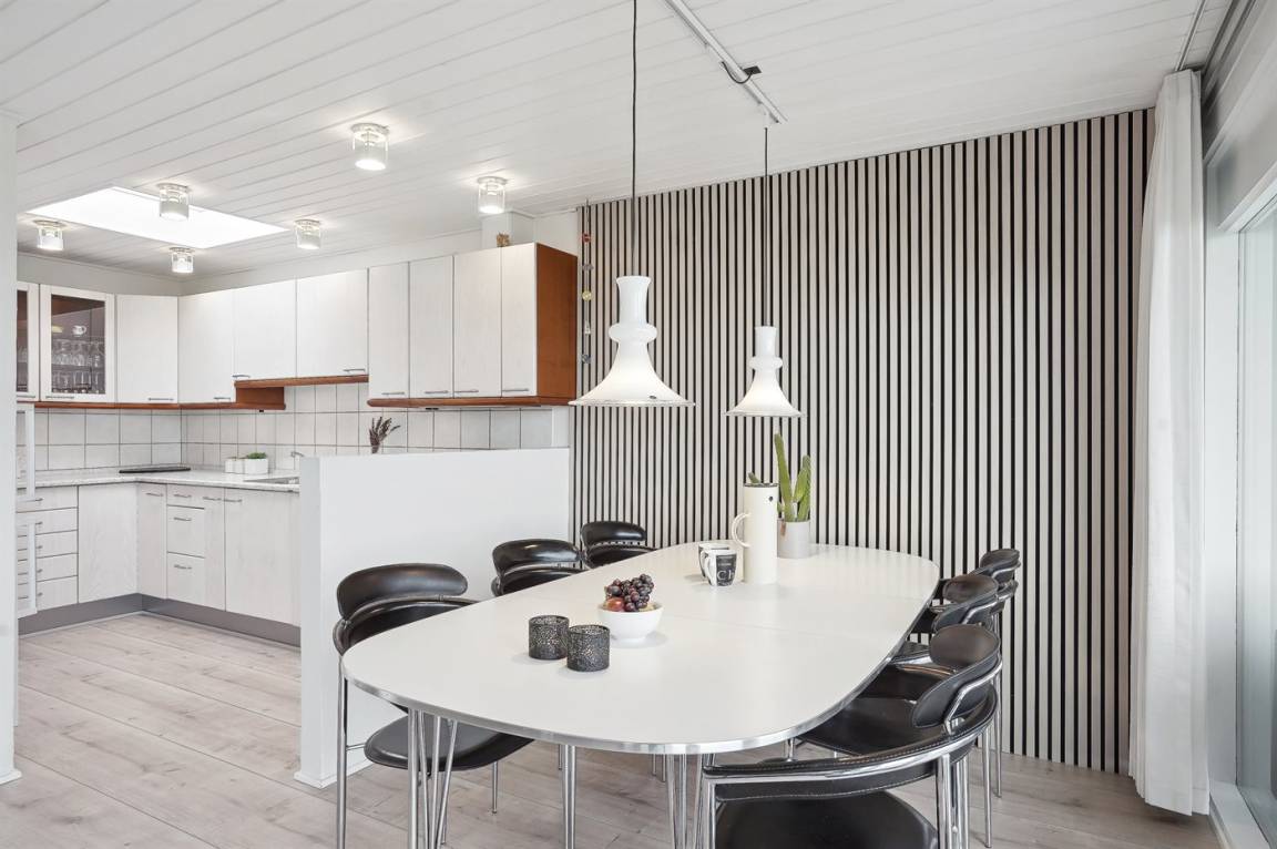 EinrichtungDas Ferienhaus eignet sich für 8 Personen. 2 der Schlafplätze eignen sich jedoch nur für größere Kinder (4-11 Jahre). Die Ferienunterkunft hat eine Wohnfläche von 124 m² und wurde 1960 gebaut. 1990 wurde die Ferienunterkunft renoviert. 2017 wurde die Ferienunterkunft teilweise renoviert. Es ist erlaubt 1 Haustier mitzubringen. Die Ferienunterkunft ist mit energiesparender Wärmepumpe ausgestattet. Die Ferienunterkunft ist mit Waschmaschine ausgestattet. Wäschetrockner. Tiefkühlmöglichkeit mit 30 Liter Nutzinhalt. Es gibt außerdem einen Kaminofen. Für die jüngsten Feriengäste ist 1 Kinderhochstuhl vorhanden.