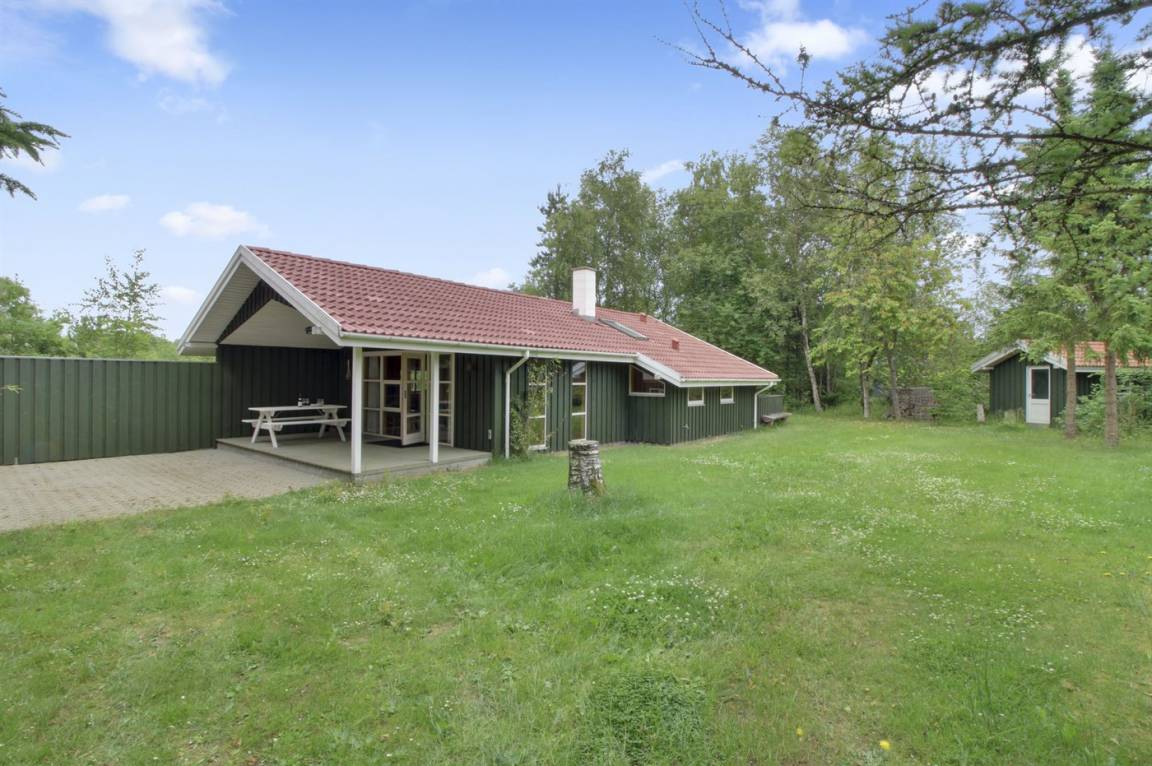 Ein gepflegtes Ferienhaus, in einer ruhigen Ferienhaussiedlung, dicht an einem kinderfreundlichen Sandstrand gelegen. Das Haus liegt auf einem abgeschirmten Grundstück am Ende einer Sackgasse und es steht eine teilweise überdachte Terrasse mit Gartenmöbeln, Liegestühlen und Grill zur Verfügung.