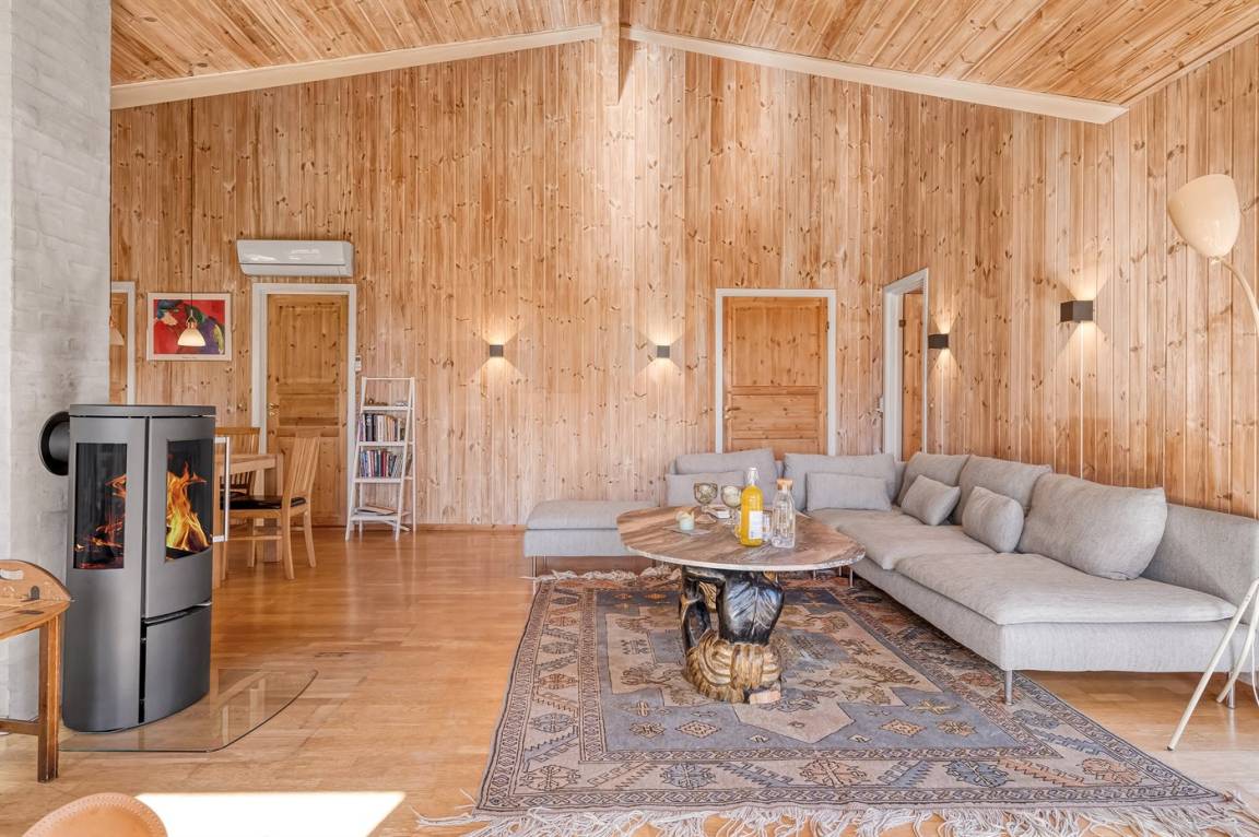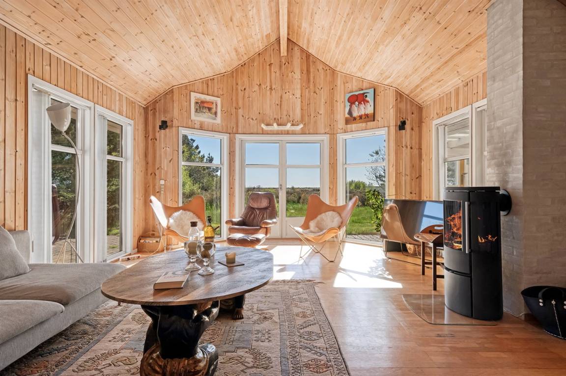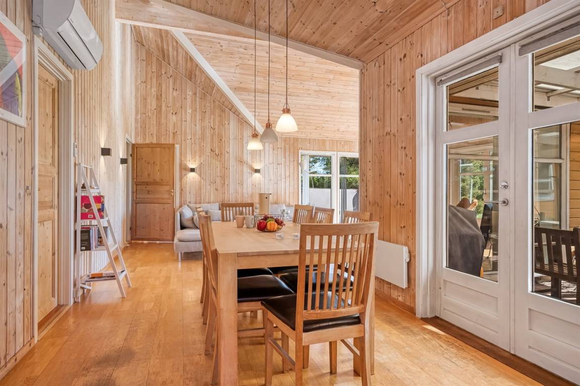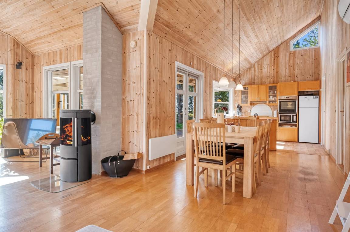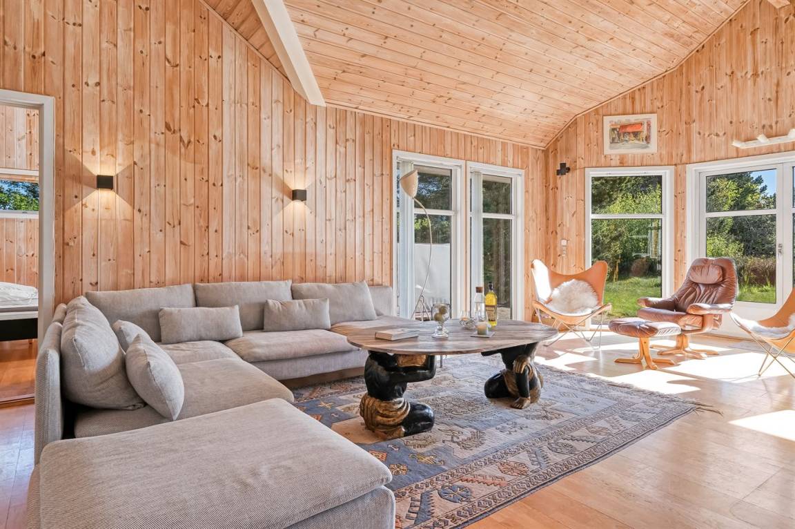 Erlebe dieses besonders schöne und attraktive, skandinavische Ferienhaus mit einer Wohnfläche von 116 m². Das Haus wurde 1998 erbaut und ist über die Jahre modernisiert. Es bietet u. a. Einrichtungen in Form von einer Innensauna an.