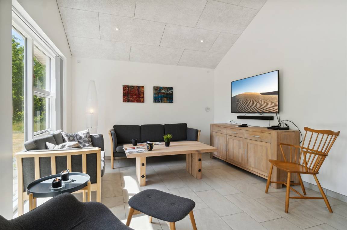Dieses große und schöne Ferienhaus, 2018 gebaut, liegt in ruhiger und naturschöner Umgebung. Das Haus liegt zwischen den Ferienorten Hou und Hals am schönen Küstenabschnitt zum Kattegat, wo es sehr gute und kinderfreundliche Sandstrände gibt.