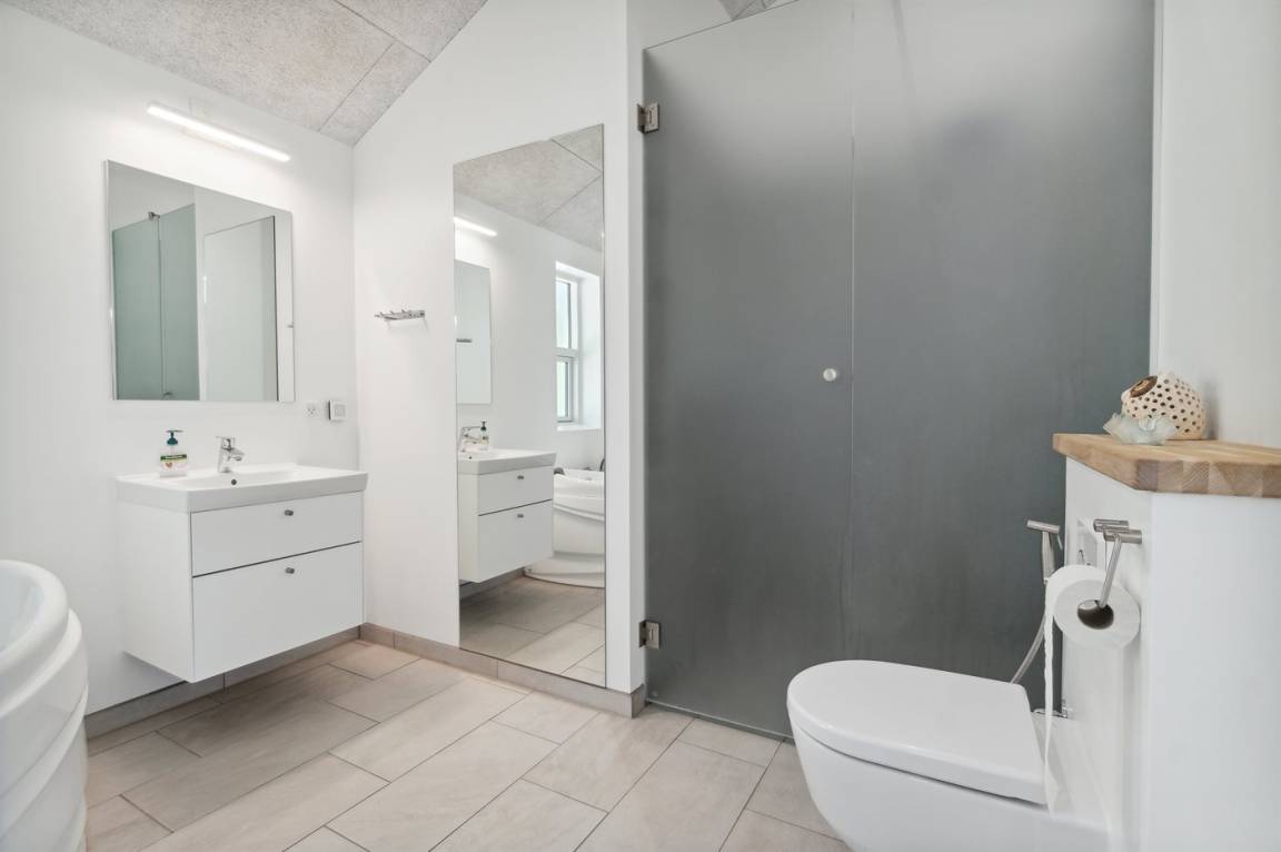 WC und BadEs gibt 2 Badezimmer mit Fußbodenheizung; 1 mit Duschnische und 1 mit Badewanne. Außerdem steht eine Gästetoilette zur Verfügung – ebenfalls mit Fußbodenheizung.