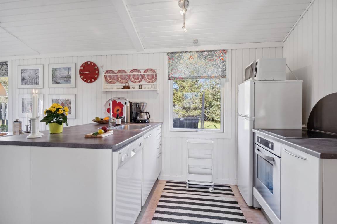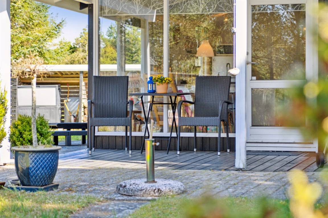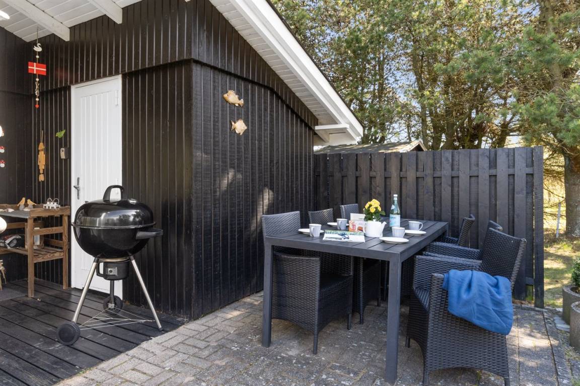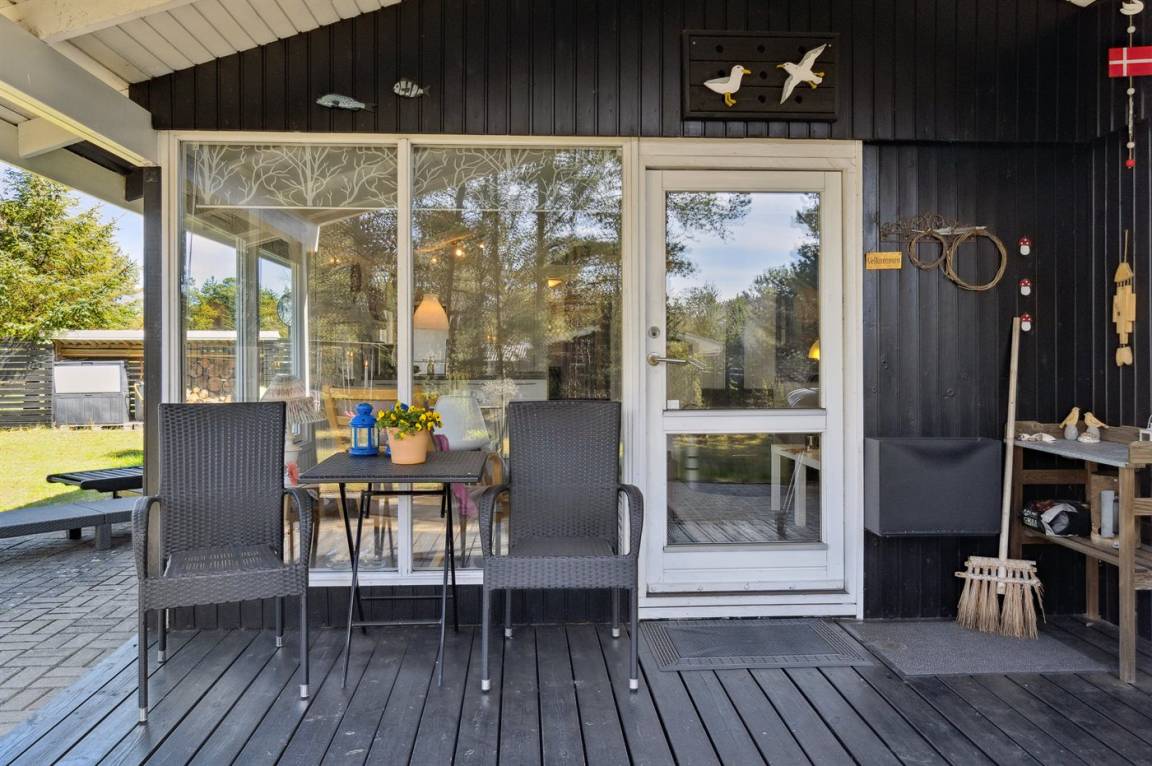 DraußenDie Ferienunterkunft liegt auf einem 1200 m² großen Das Grundstück ist eingezäunt. Die Entfernung zum Meer beträgt 500 m. Die Entfernung zum Fjord beträgt 6570 m. Die nächste Einkaufsmöglichkeit liegt 900 m entfernt. In einem Abstand von 6080 m gibt es einen Golfplatz. Es steht ein 40 m² Terrassenareal zur Verfügung. Außerdem gibt es 8 m² überdachte Terrasse. Zutritt zu einem Wintergarten. Schaukel. Sandkasten. Es steht ein Grill zur Verfügung. Parkplatz auf dem Grundstück.